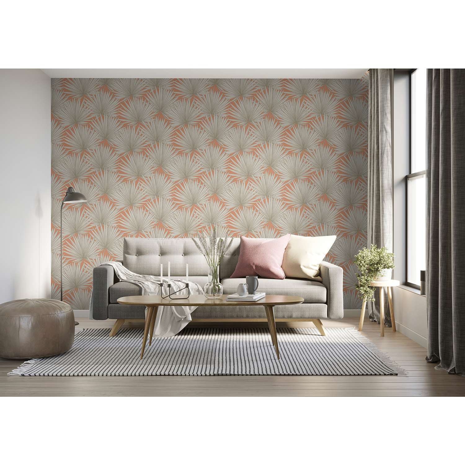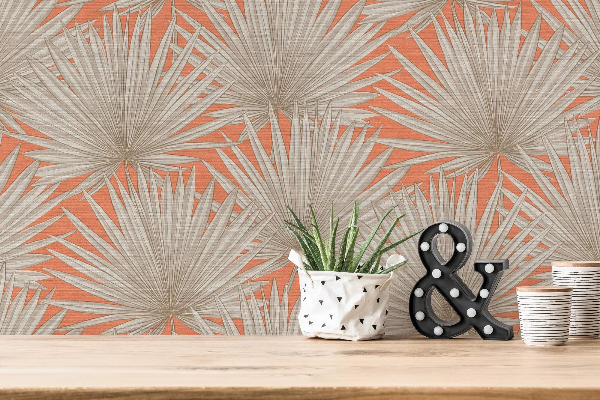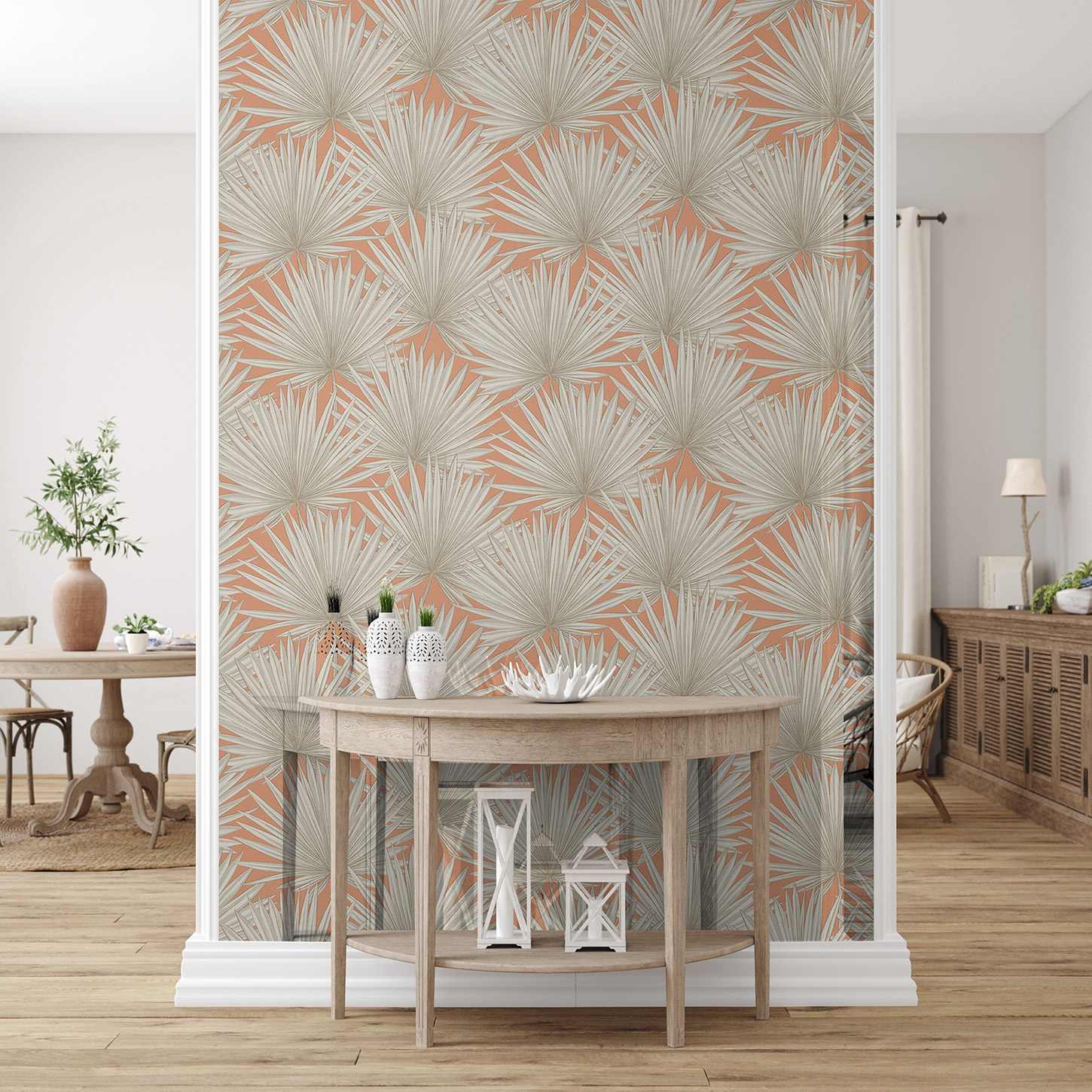 - Colori della carta da parati: Arancione, Greige, Bianco