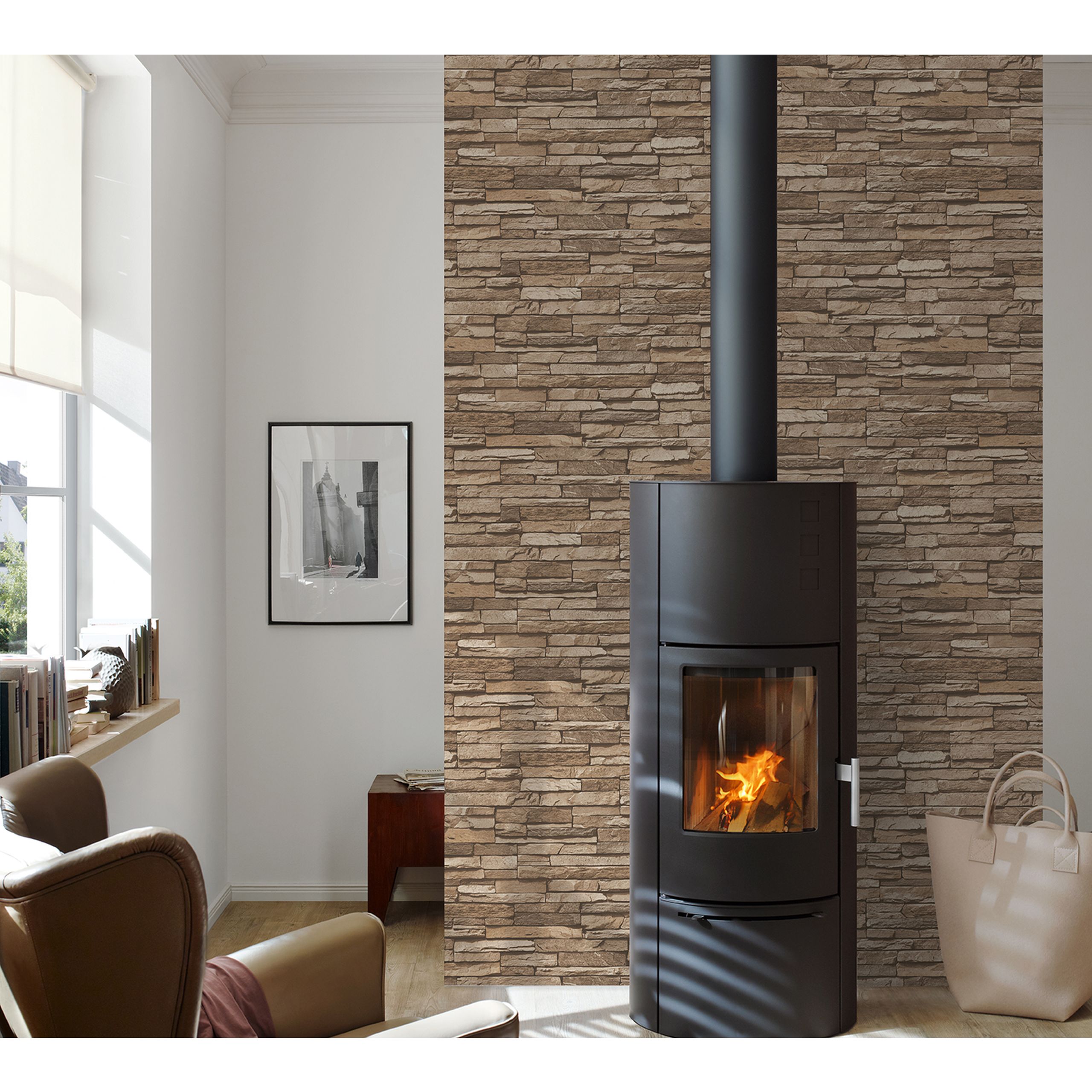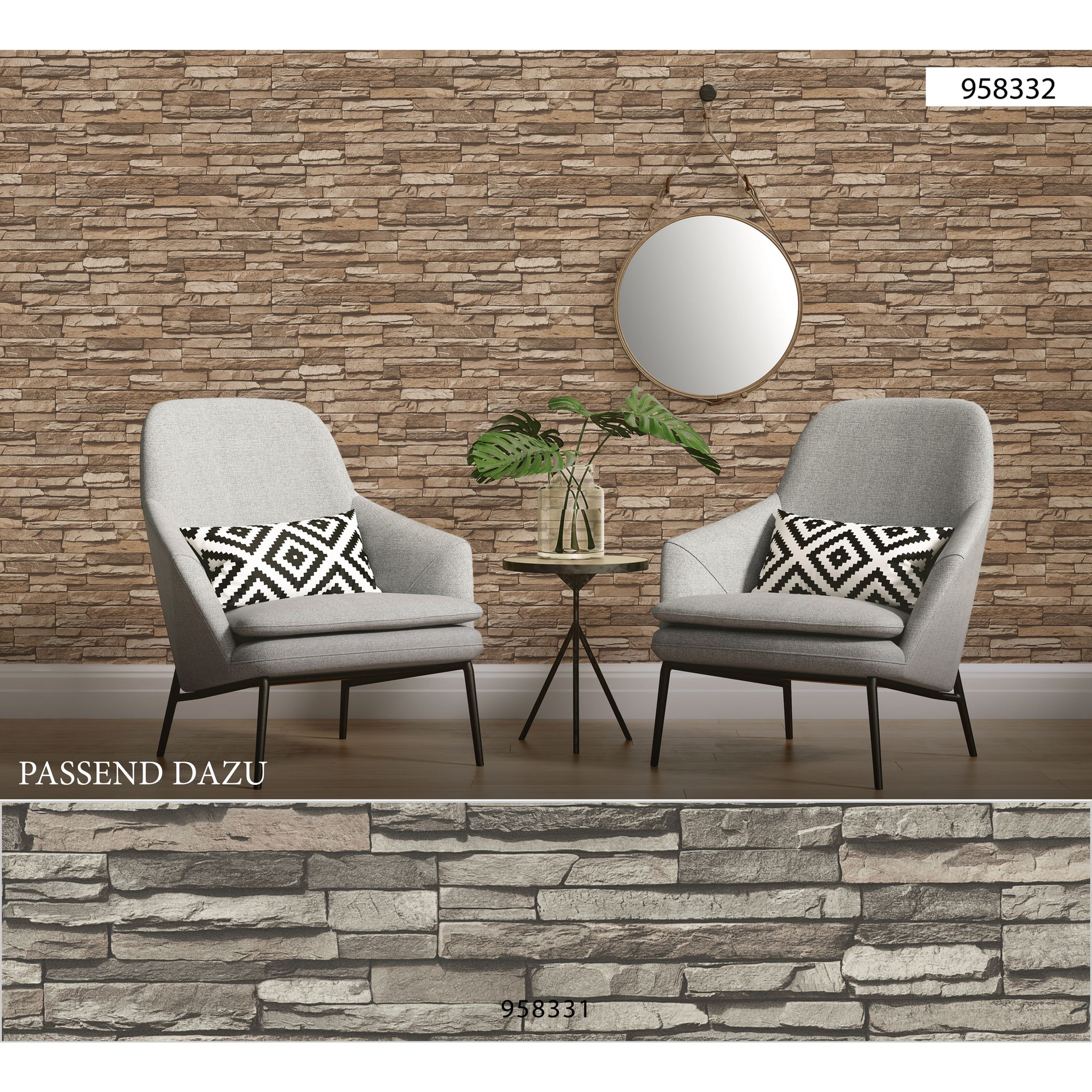 A.S. Creation | Best of Wood'n Stone | 958332 | Carta da parati in tessuto non tessuto | Effetto pietra | 0,53 x 10,05 m | Beige