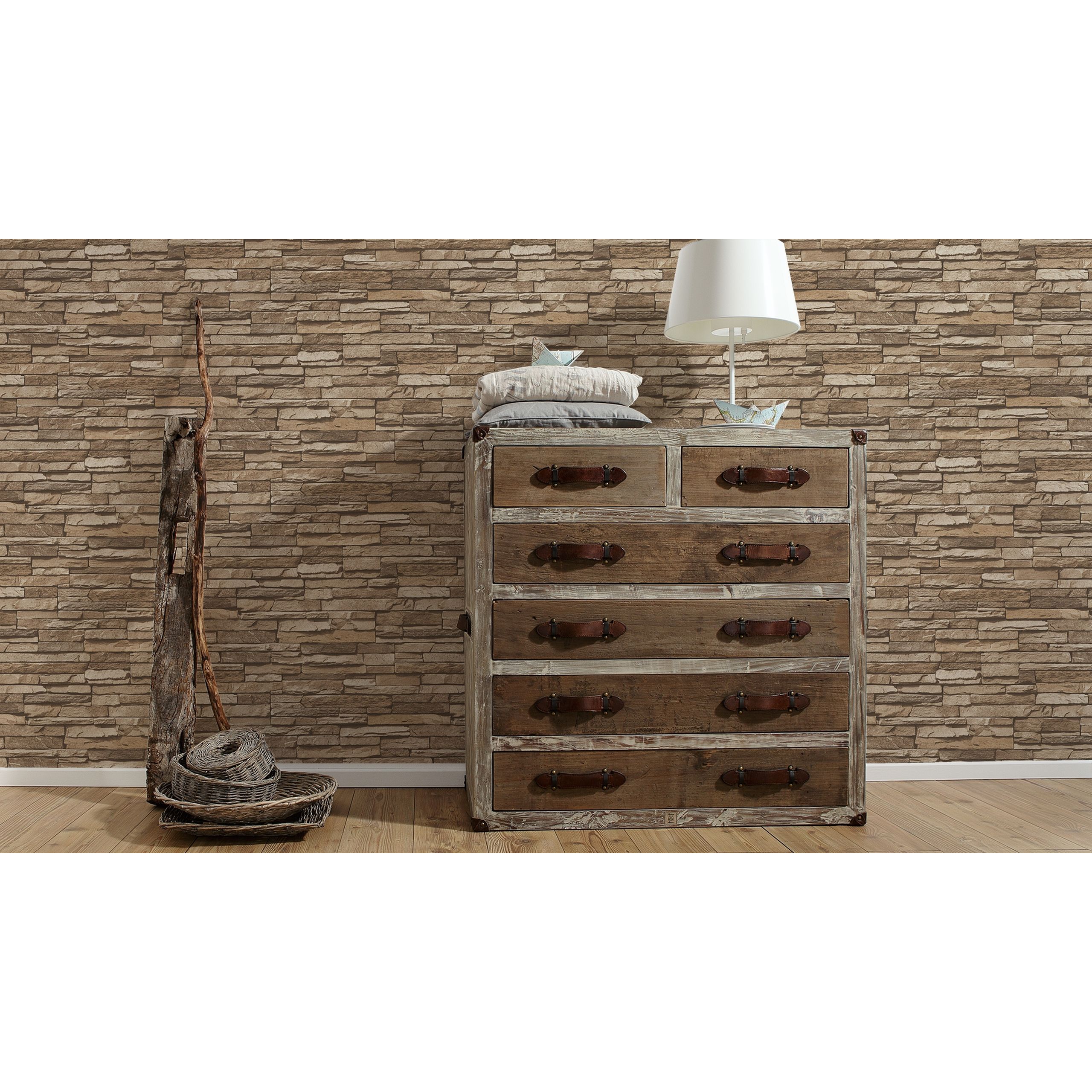 A.S. Creation Il meglio di Wood'n Stone 958332 Carta da parati in tessuto non tessuto Effetto pietra 0,53 x 10,05 m Beige