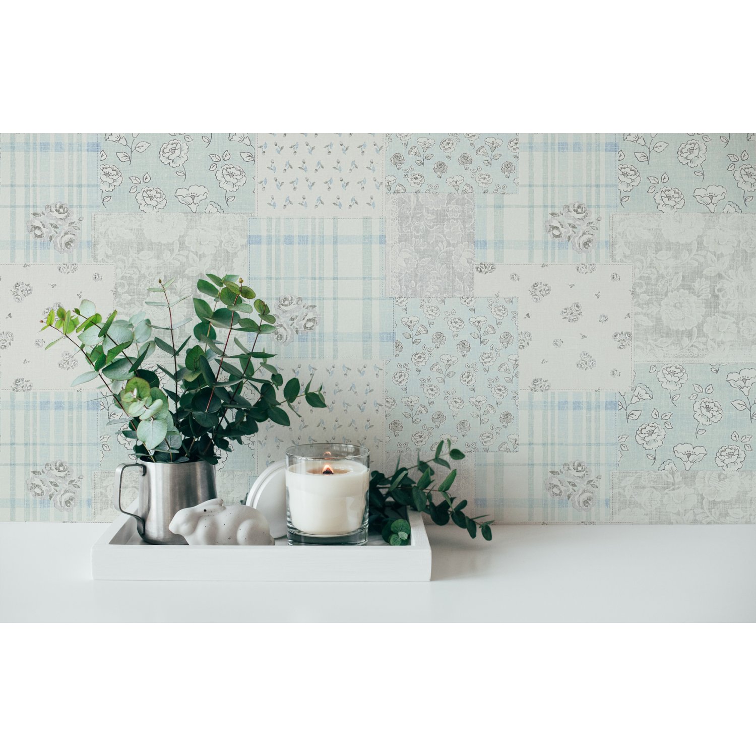 - Colori della carta da parati: Azzurro, Grigio, Bianco