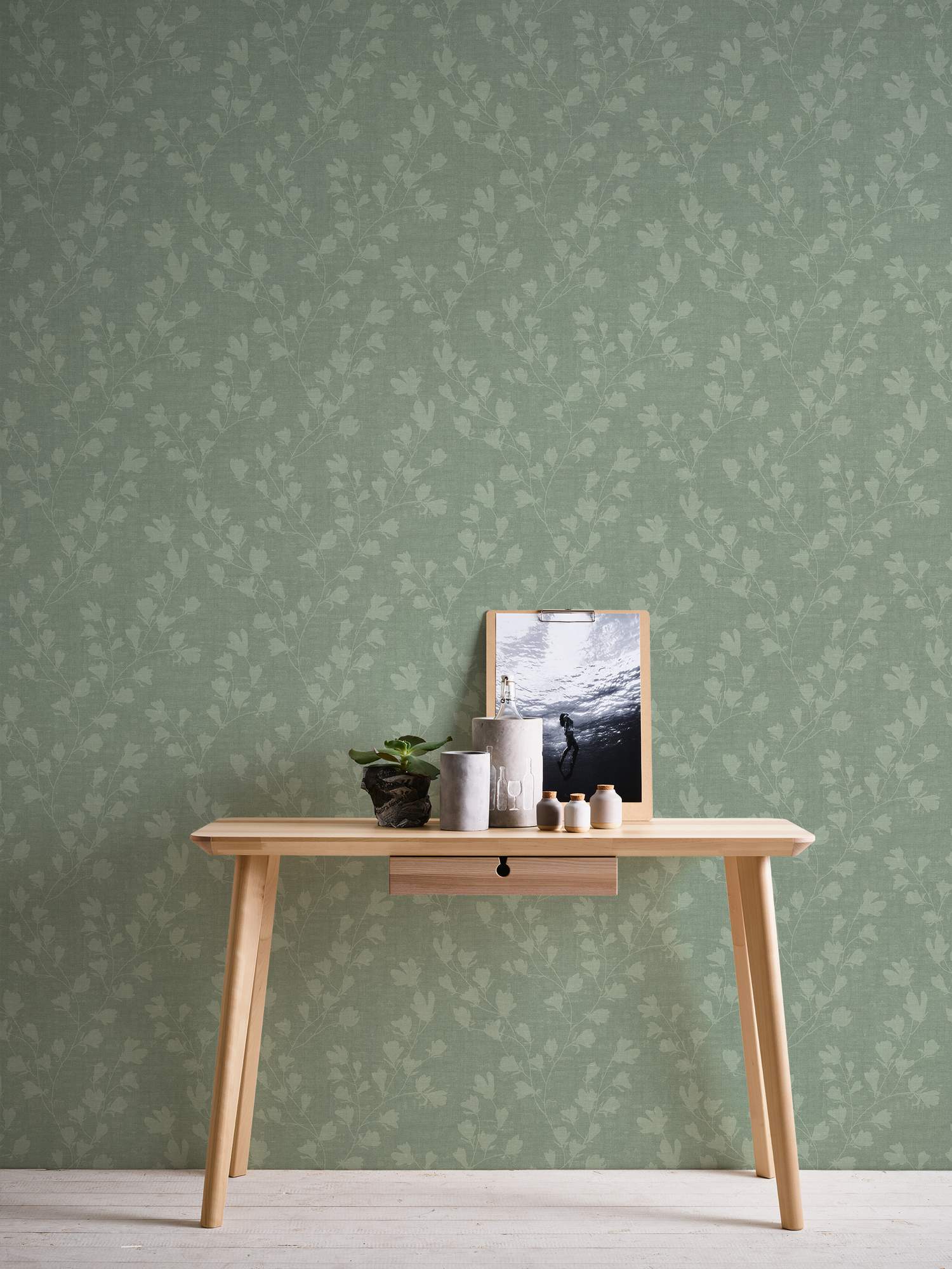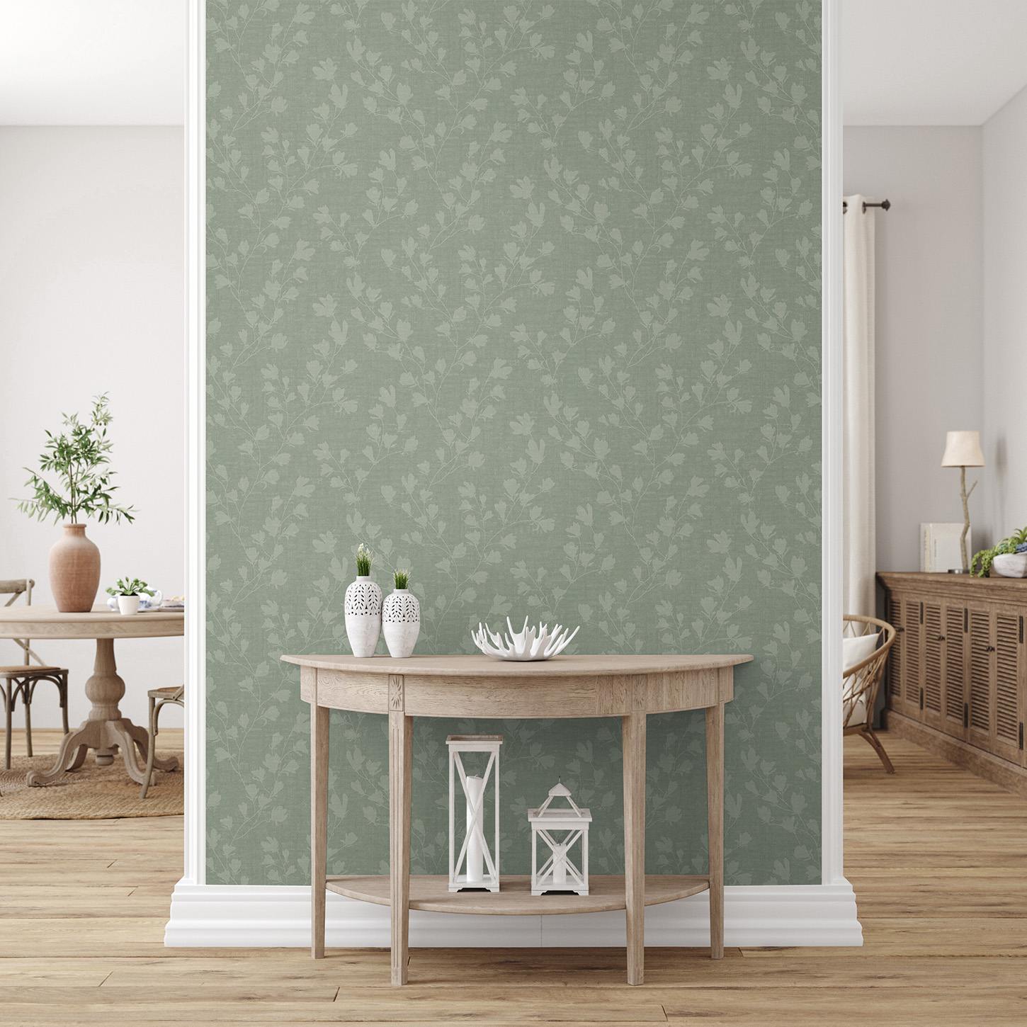 A.S. Creation | Nara | 387473 | Carta da parati in tessuto non tessuto | Motivo floreale | 10,05 x 0,53 m | Verde