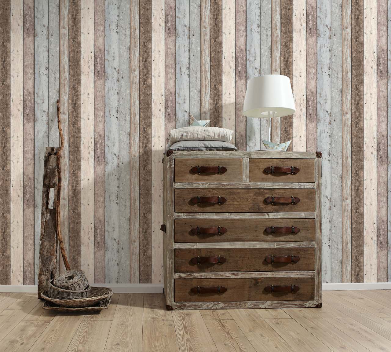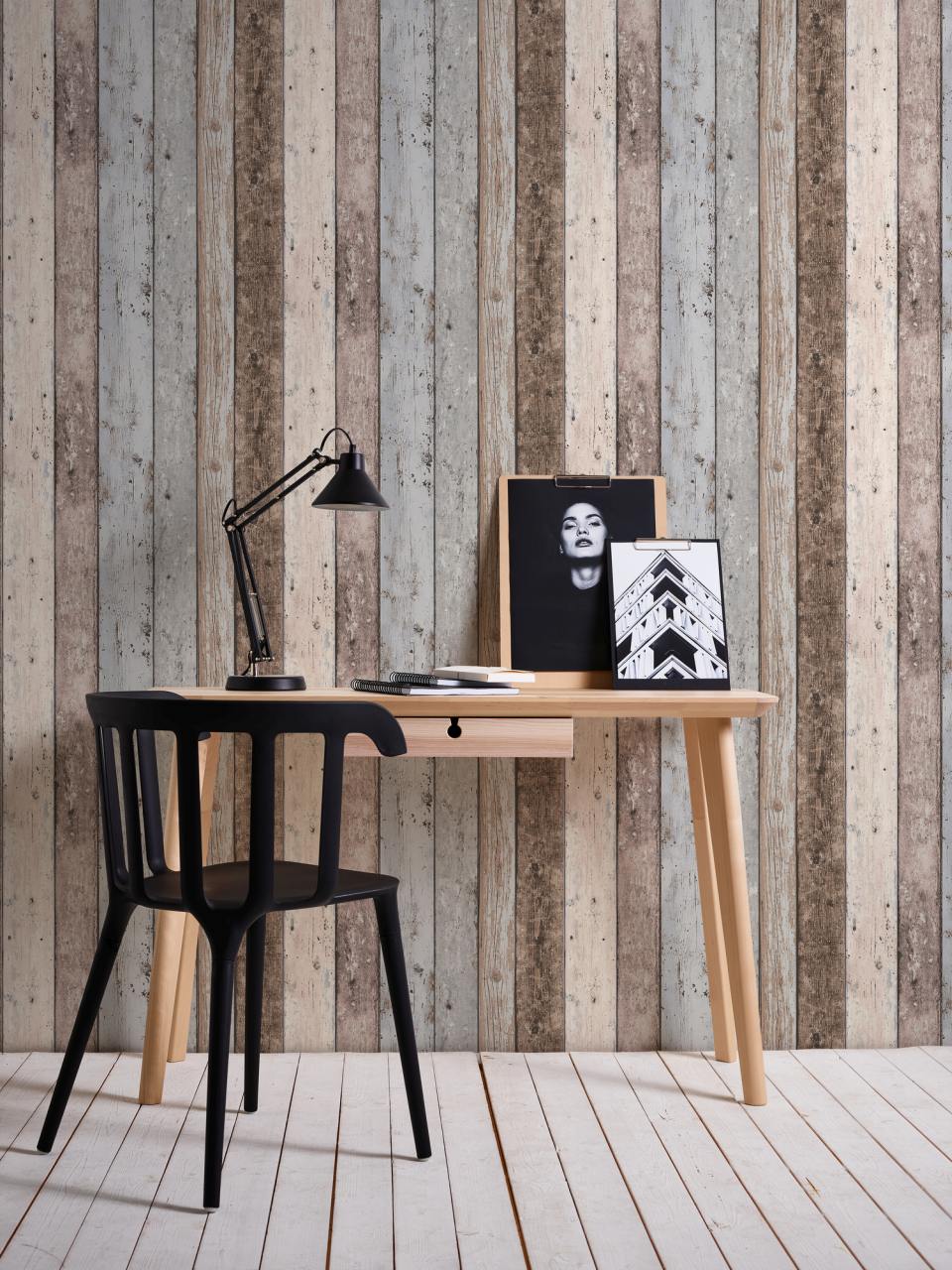 Mir gefällt die Tapete, weil die Holzplanken in verschiedenen Farben eine warme und echte Wirkung erzeugen. Die Struktur sieht echt aus und macht den Raum gemütlich. Das Material ließ sich gut schneiden und ausrichten, die Übergänge sind gleichmäßig.