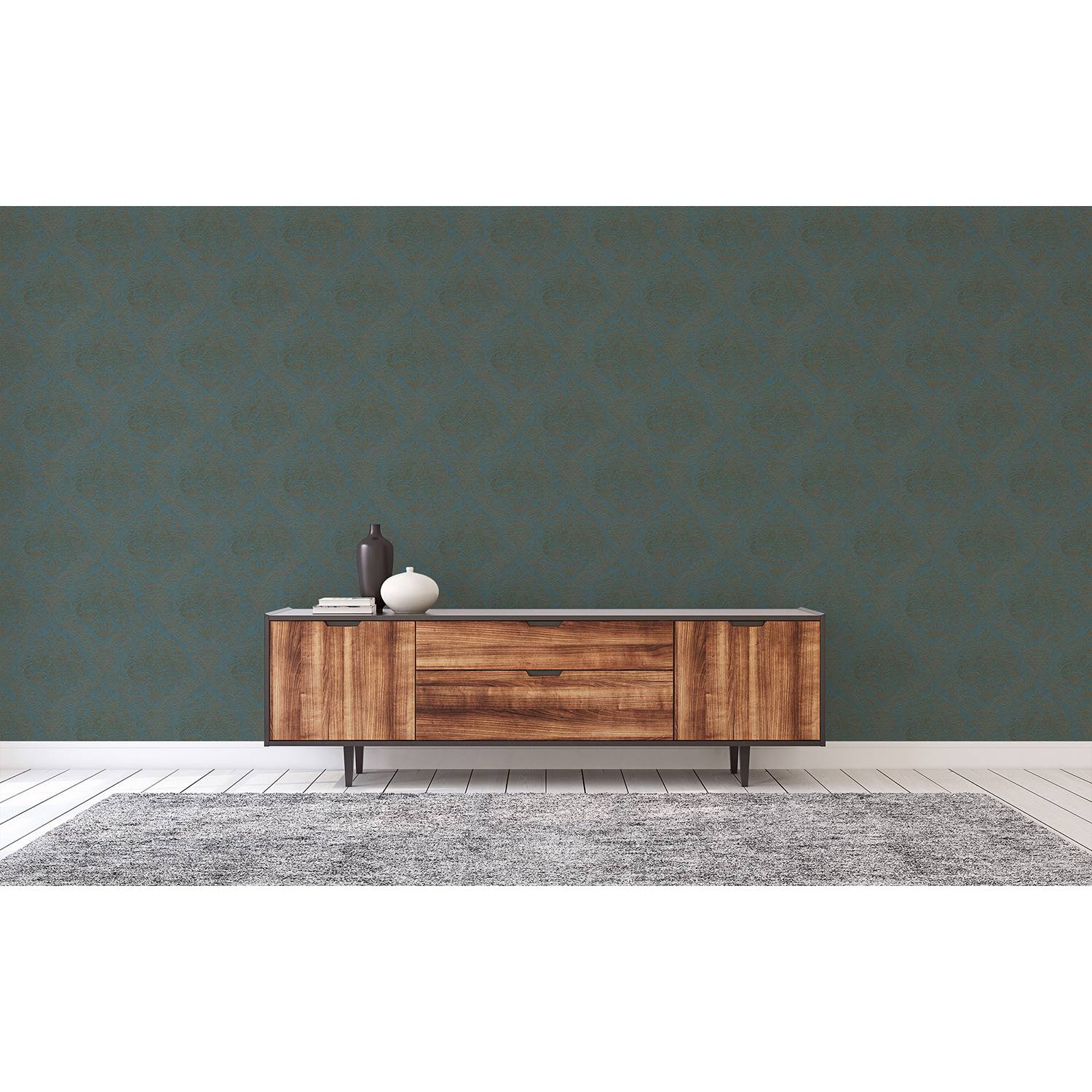 A.S. Creation Stili di viaggio 391124 Carta da parati in tessuto non tessuto Barocco 10,05 m x 0,53 m Petrolio