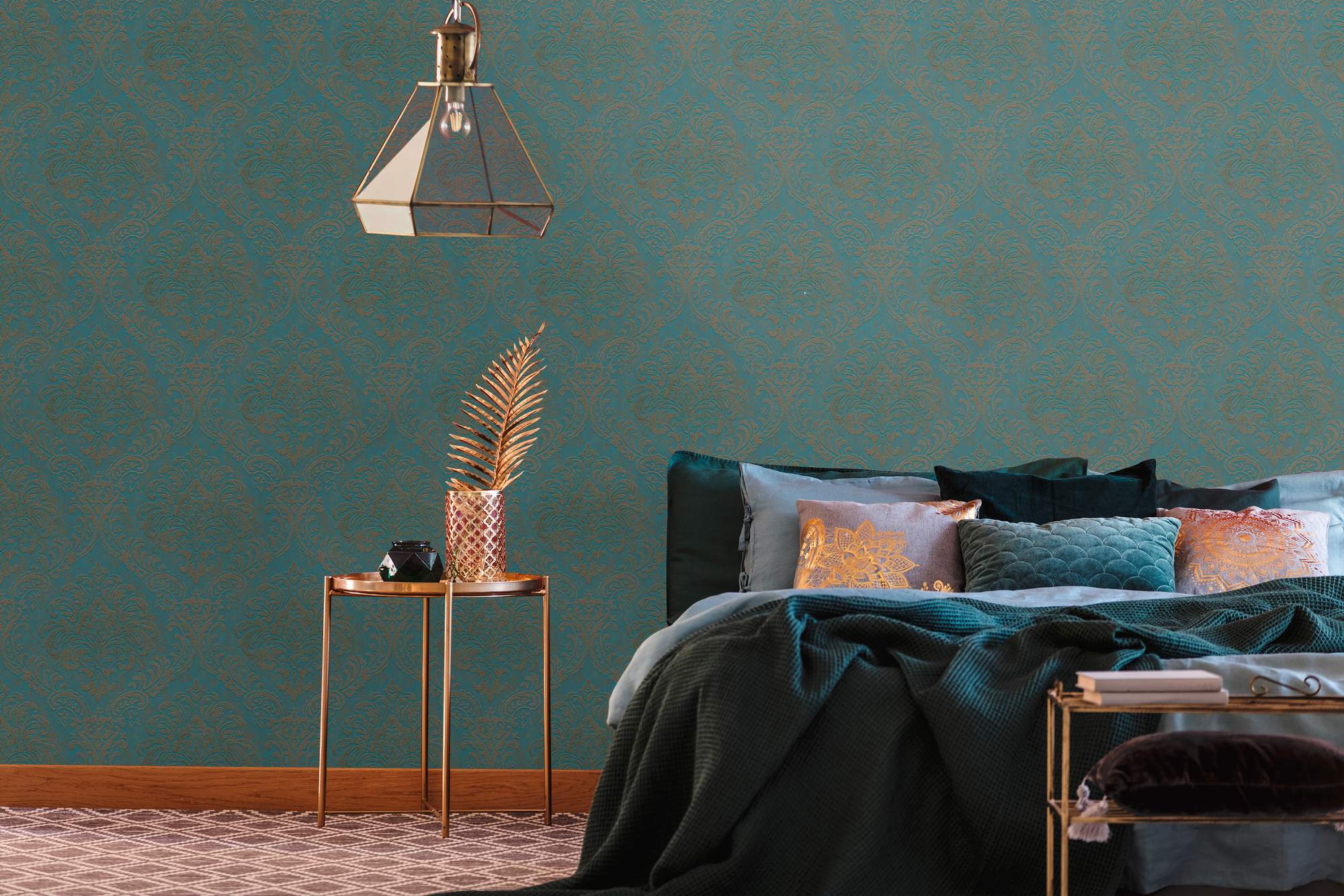 - Colore della carta da parati: Petrolio, Oro