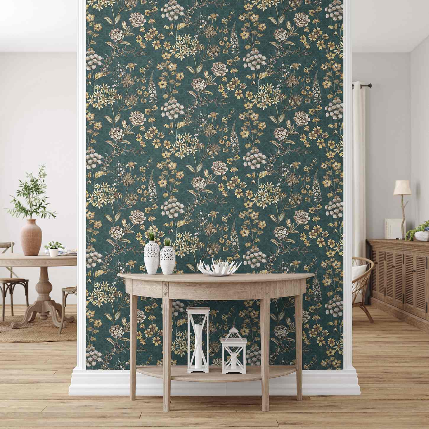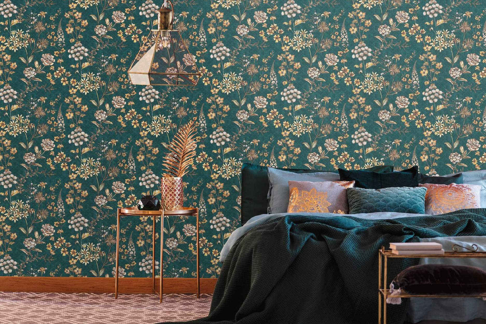 A.S. Creation | Travel Styles | 391174 | Carta da parati in tessuto non tessuto | Motivo floreale | 10,05 x 0,53 m | Petrolio
