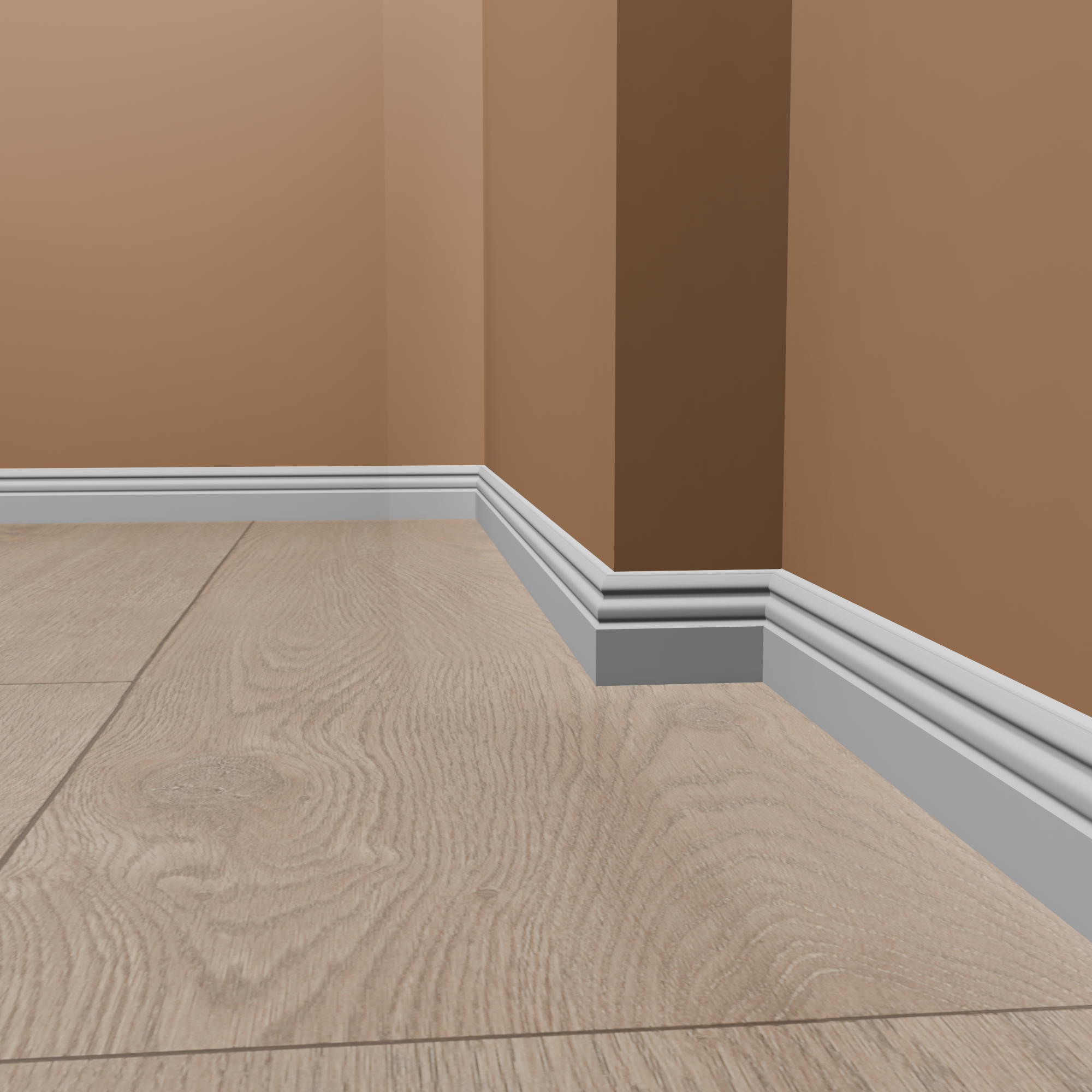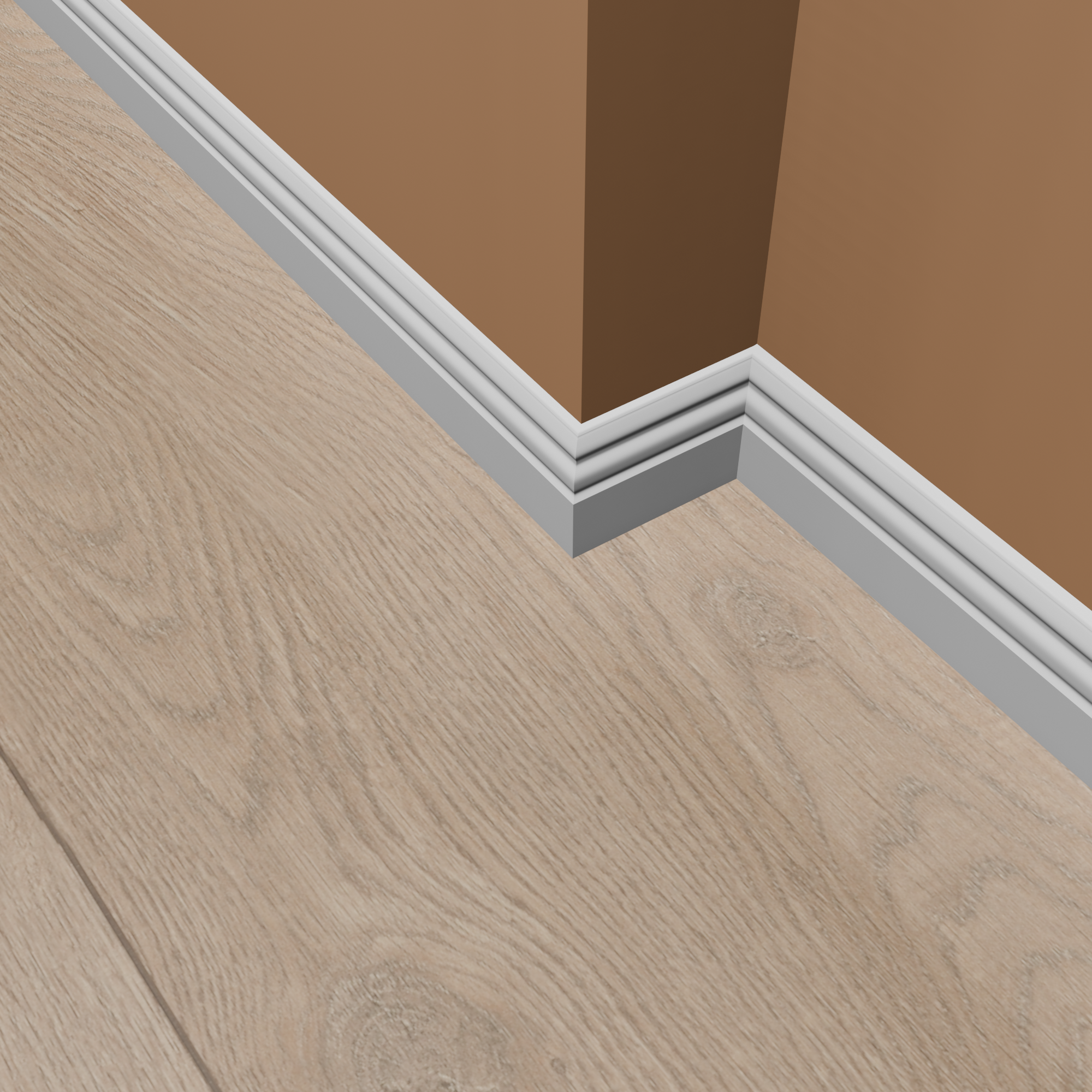 Il battiscopa può essere installato in vari modi, tra cui incollaggio, avvitamento o inchiodatura. Il metodo di installazione esatto dipende dal tipo di superficie su cui viene fissato. Per maggiori informazioni, consulta le nostre Istruzioni per l'installazione del battiscopa. Puoi trovare gli accessori di montaggio adatti nella scheda "Accessori".
