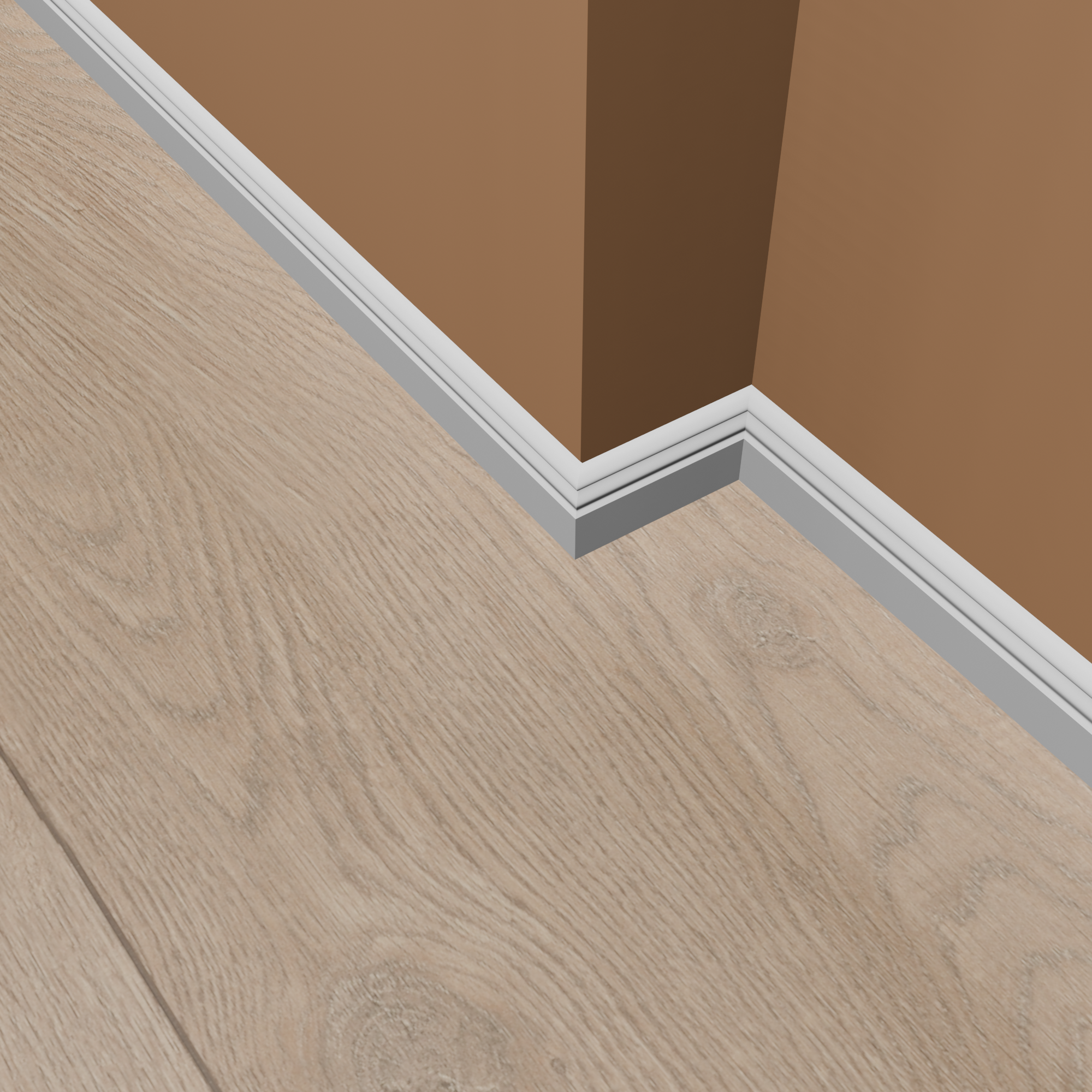 Il battiscopa può essere installato in vari modi, tra cui incollandolo, avvitandolo o inchiodandolo. Il metodo di installazione esatto dipende dal tipo di superficie su cui si desidera fissarlo. Per maggiori informazioni, consulta le nostre Istruzioni per l'installazione del battiscopa. Puoi trovare gli accessori di montaggio adatti nella scheda "Accessori".