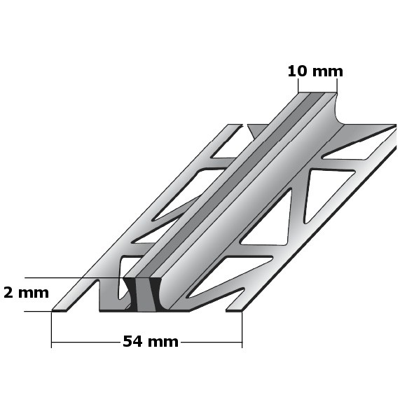 - DIMENSIONI: Il profilo per giunto di dilatazione ha le dimensioni 54 x 2 x 2500 mm.