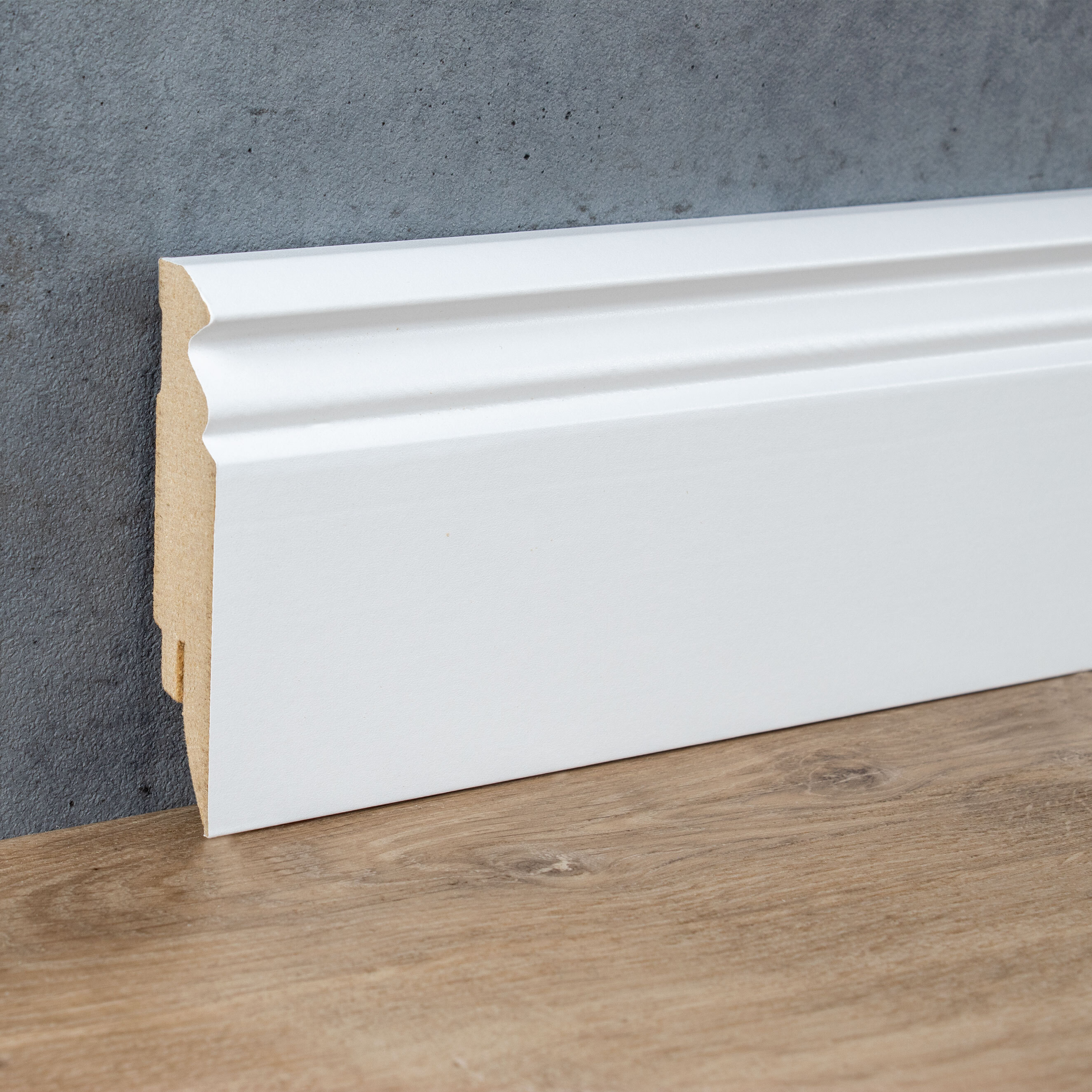 Questo battiscopa con profilo Hamburg colpisce particolarmente per la sua forma classica ed elegante. Con il suo profilo curvo nella parte superiore, garantisce una transizione fluida dal pavimento alla parete. Grazie al suo nucleo in MDF solido e resistente, il battiscopa è particolarmente durevole, garantendoti di godertelo molto più a lungo.