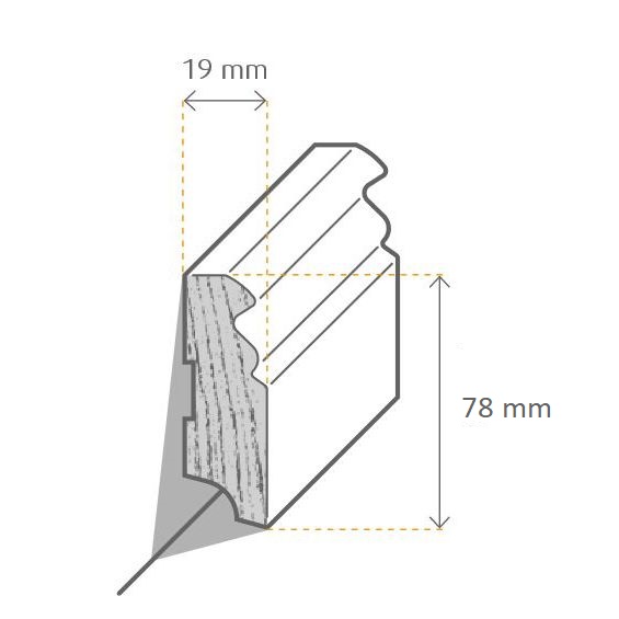 Consiglio per angoli e spigoli: Risparmiati il ??tempo di dover tagliare gli angoli a 45°. Offriamo angoli pretagliati per molti dei nostri battiscopa. Riceverai un angolo interno o esterno che dovrai solo tagliare al centro. In tutti gli altri casi, è possibile utilizzare in alternativa angoli universali in legno di vari spessori per una finitura perfetta del battiscopa. Per maggiori informazioni, consultare la scheda "Accessori".