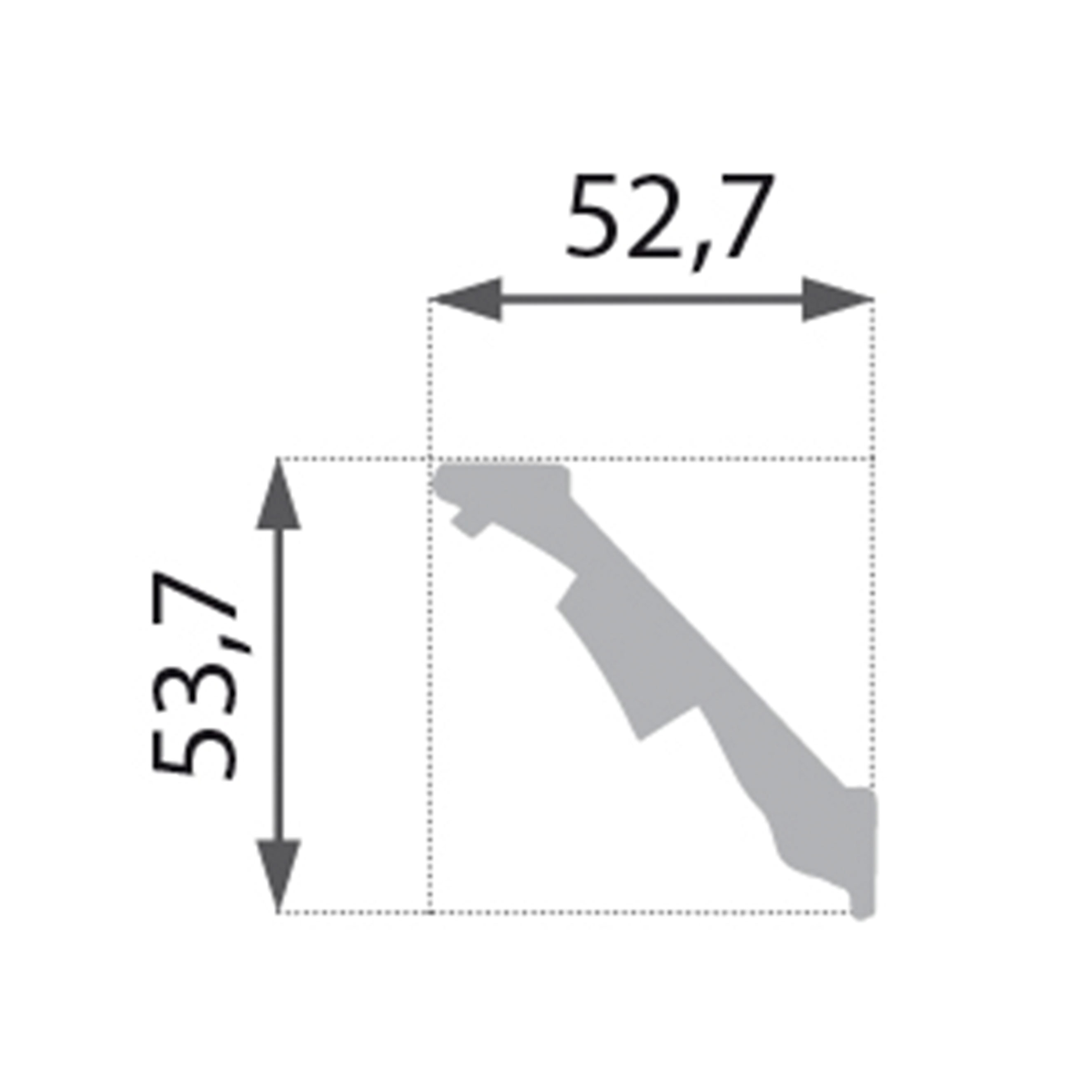 Die Maße der Stuckleiste sind im Datenblatt angegeben.