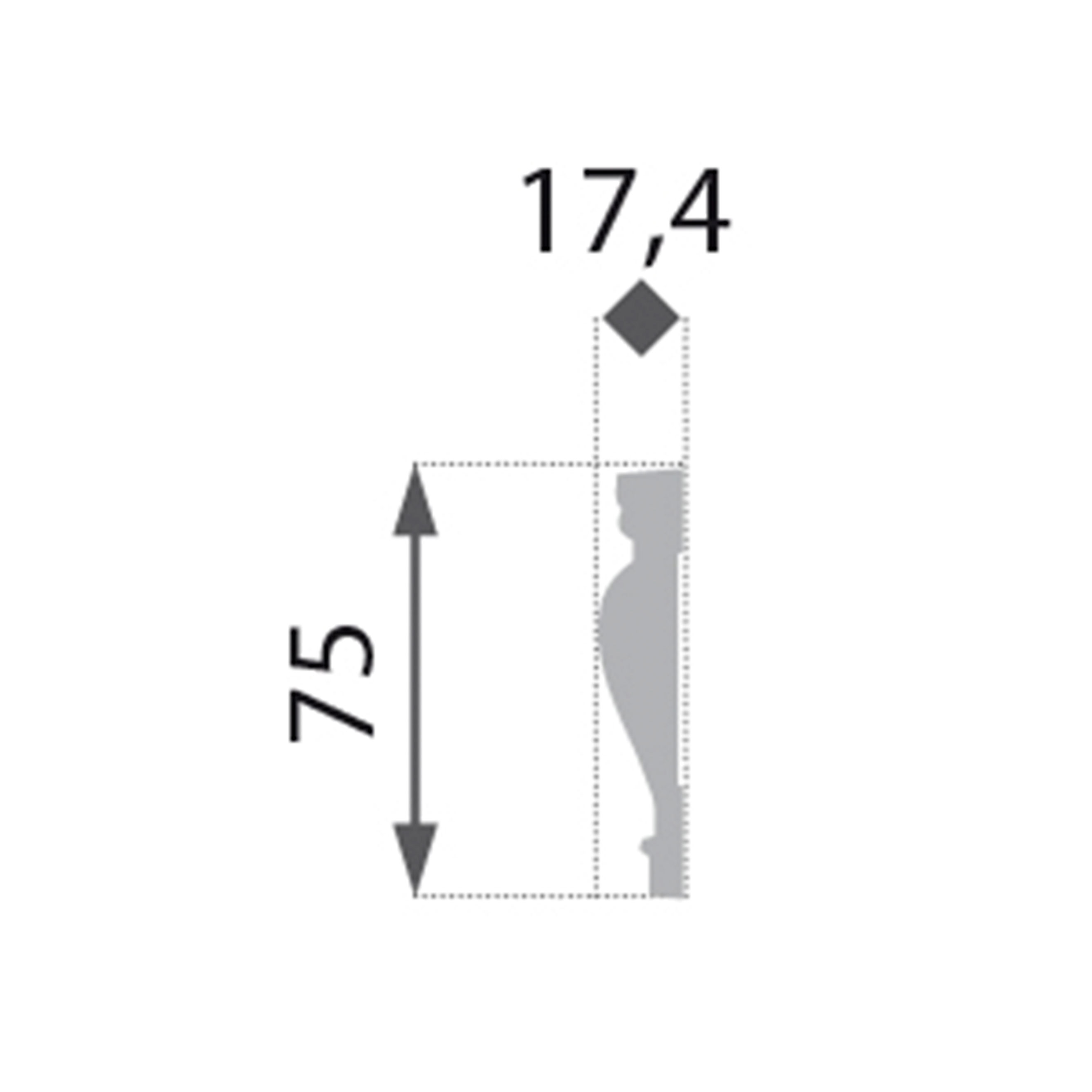 Die Maße der Stuckleiste sind im Datenblatt angegeben.