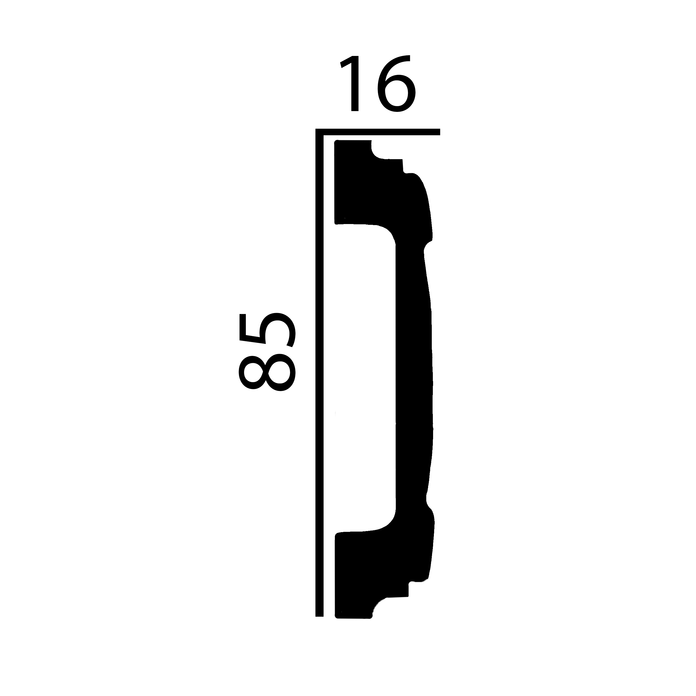 - DIMENSIONI: Il battiscopa, con dimensioni di 16 x 85 x 2000 mm, crea una transizione pulita sulla parete o sul soffitto.