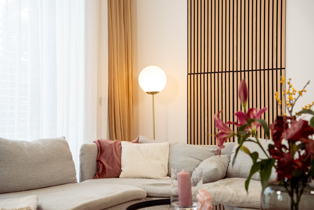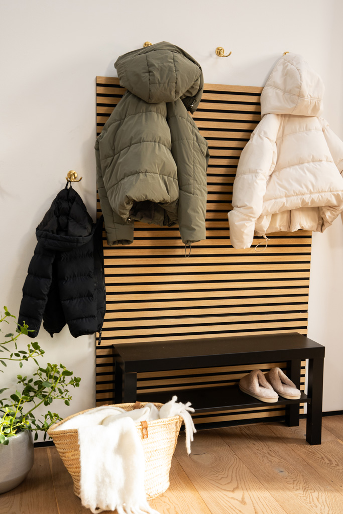 - MATERIALE SOSTENIBILE: I pannelli con eleganti lamelle in vero legno su supporto in feltro sostenibile combinano bellezza naturale e consapevolezza ecologica.