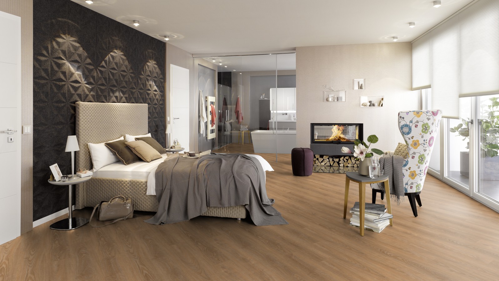 Il pavimento vinilico di design PROJECT FLOORS è la scelta perfetta per chi cerca un pavimento che non solo resista senza problemi al passaggio delle rotelle delle sedie, ma sia anche adatto ad ambienti con riscaldamento a pavimento. Il formato a listoni con bisellatura sui 4 lati conferisce al vostro ambiente un'eleganza senza tempo e crea un'atmosfera naturale.