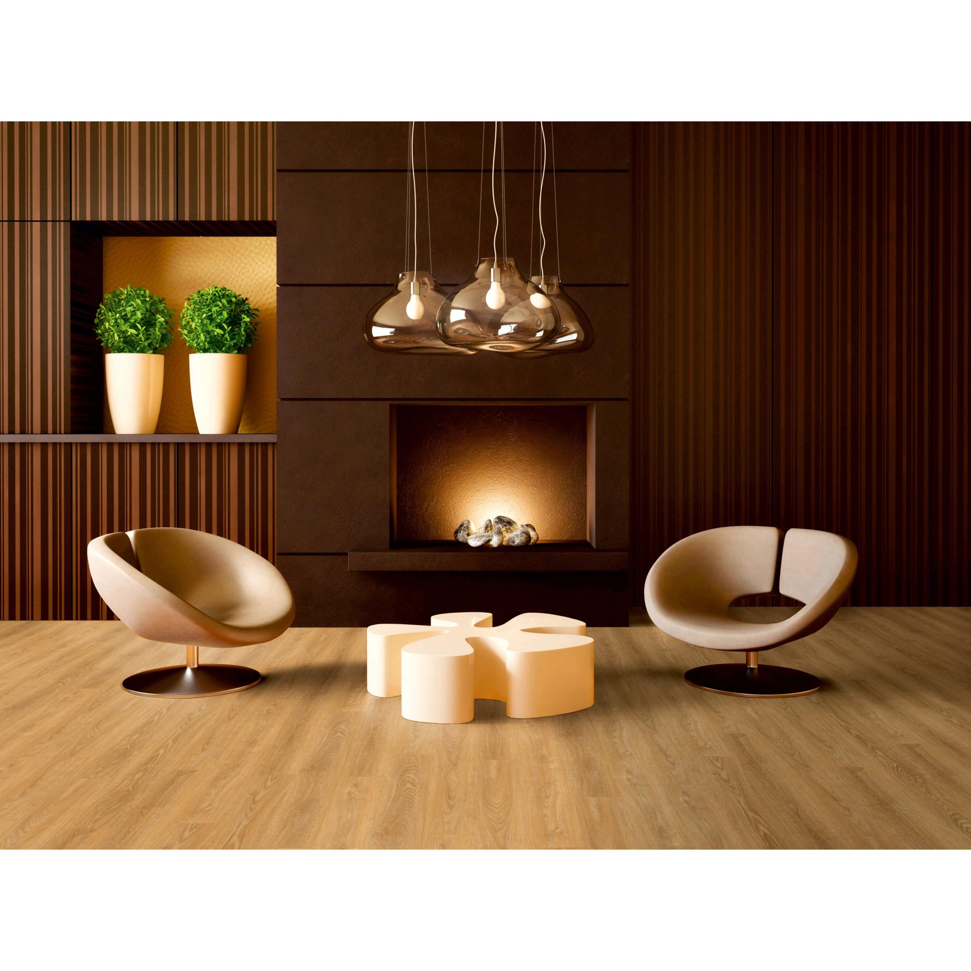 - REALISTICO ASPETTO: Grazie alla sua goffratura effetto legno sintetico, l'aspetto è quasi indistinguibile da quello di un vero pavimento in legno. ALTAMENTE RESISTENTE: Classico pavimento in vinile con isolamento acustico da impatto. ELEVATA RESISTENZA: La superficie di alta qualità previene graffi e opacizzazione e offre una protezione affidabile contro le macchie. FACILE DA PULIRE: Macchie e sporco possono essere facilmente rimossi spazzando, aspirando o lavando con un panno umido. SILENZIOSO E CALDO: La superficie elastica ammortizza i passi ed è piacevolmente morbida, ideale per camminare a piedi nudi. ADATTO AL RISCALDAMENTO A PAVIMENTO: Grazie alla sua buona conduttività termica, il pavimento in vinile è ideale per l'uso con sistemi di riscaldamento a pavimento ad acqua calda fino a una temperatura superficiale massima di 28 °C. Classe di protezione antincendio: Resistenza allo scivolamento: R10 Miglioramento del rumore da impatto (ISO 10140-3): ca. 20 dB