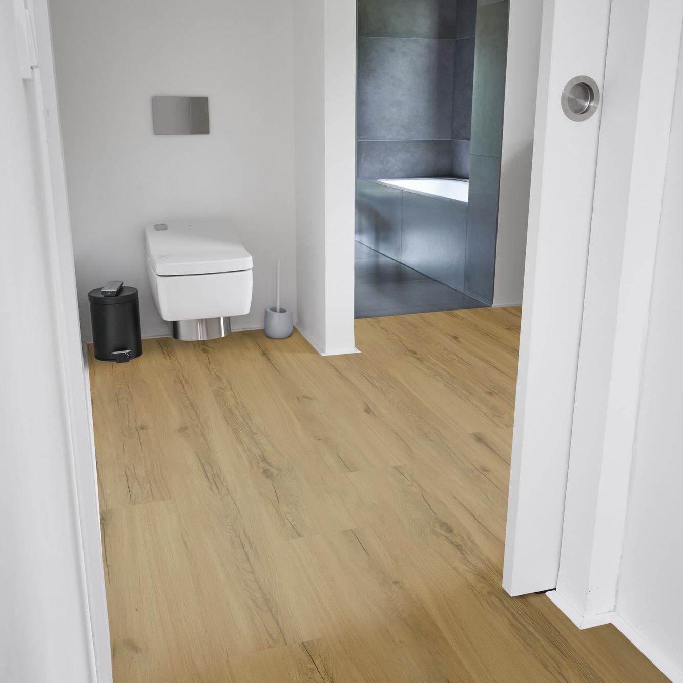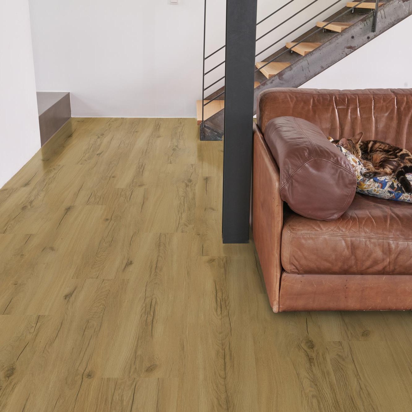 Grazie alla nostra innovativa goffratura sincronizzata con il legno, l'aspetto dei nostri pavimenti è praticamente indistinguibile da quello di un vero pavimento in legno. Ottieni l'aspetto naturale del legno senza rinunciare ai vantaggi del vinile. La nostra superficie Matecta offre una protezione aggiuntiva contro sporco e usura, anche in caso di utilizzo intenso.