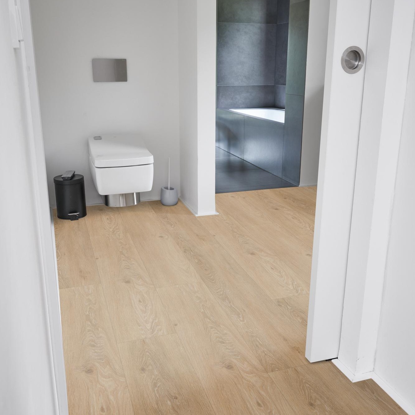 Grazie alla nostra innovativa goffratura sincronizzata con il legno, l'aspetto dei nostri pavimenti è praticamente indistinguibile da quello di un vero pavimento in legno. Ottieni l'aspetto naturale del legno senza rinunciare ai vantaggi del vinile. La nostra superficie Matecta offre una protezione aggiuntiva contro sporco e usura, anche in caso di utilizzo intenso.