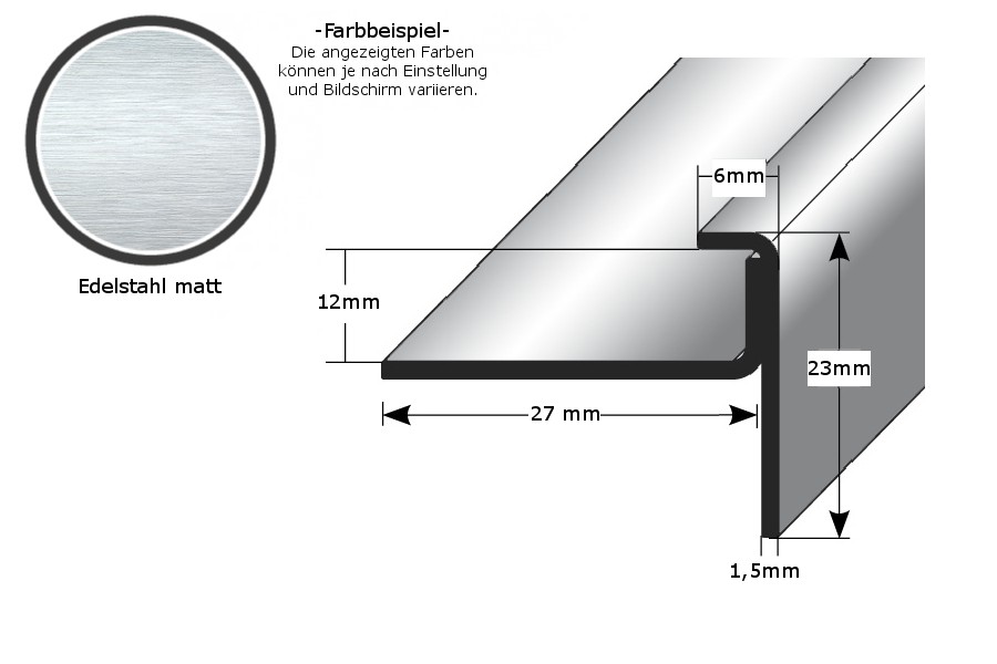Profili di bordatura e finitura Auer Claydon 23 x 29 x 2700 mm, altezza bordatura: 2 - 15 mm, acciaio inox