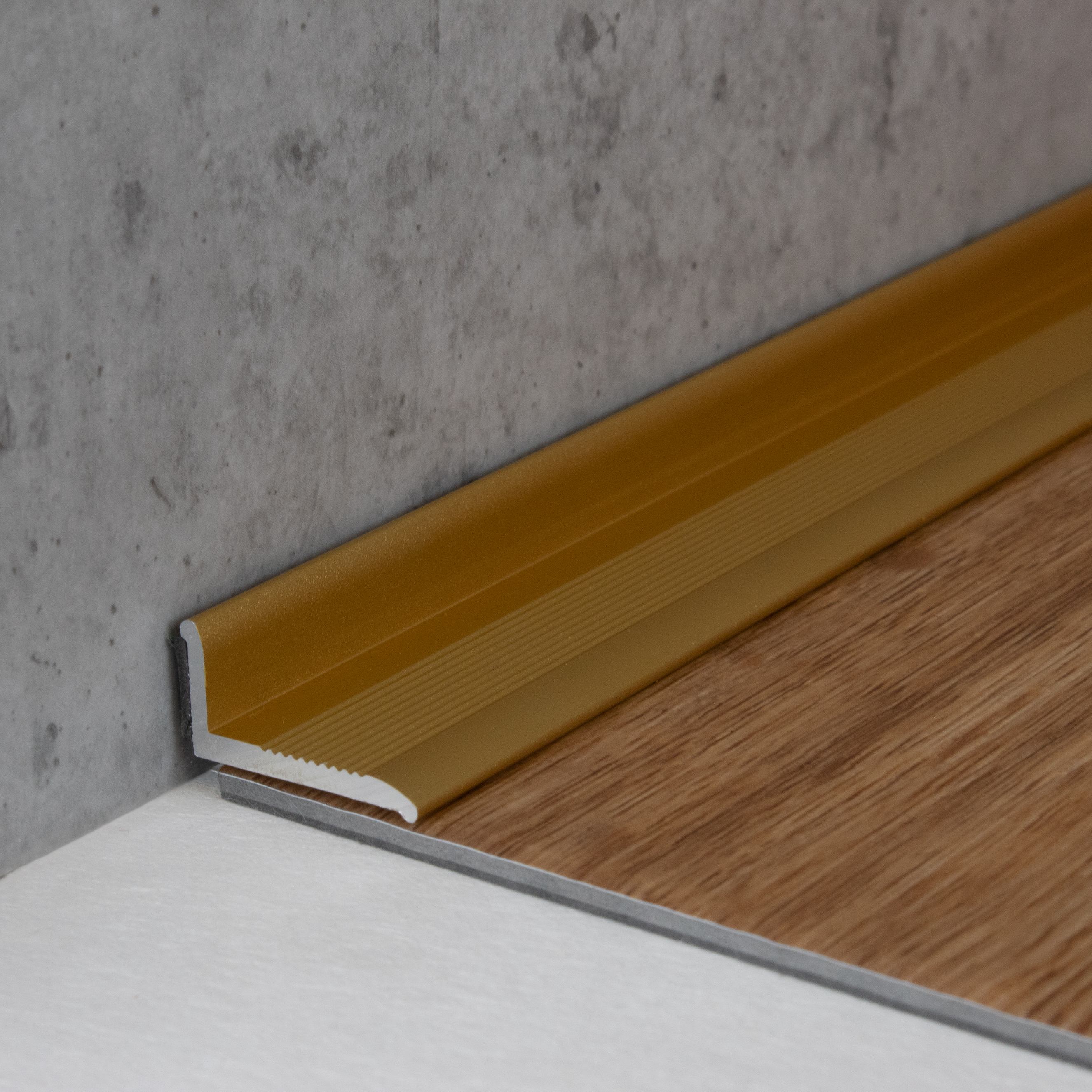 - COLORE: Color oro. Grazie al suo aspetto semplice e moderno, questo colore si integra armoniosamente in qualsiasi stile di arredamento, indipendentemente dal fatto che i pavimenti siano scuri o chiari, o che le pareti siano bianche o colorate. DESIGN DEL PROFILO ACCATTIVANTE: Semplice, versatile e moderno. Questo profilo per pavimenti è senza tempo e un vero e proprio elemento di attrazione in ogni ambiente. APPLICAZIONE: I profili perimetrali proteggono idealmente i bordi del pavimento da eventuali danni e conferiscono alle finiture del pavimento un aspetto pulito e professionale. ACCESSORI: Le viti e i tasselli necessari sono inclusi. SUPERFICIE: Il profilo ha una superficie scanalata.