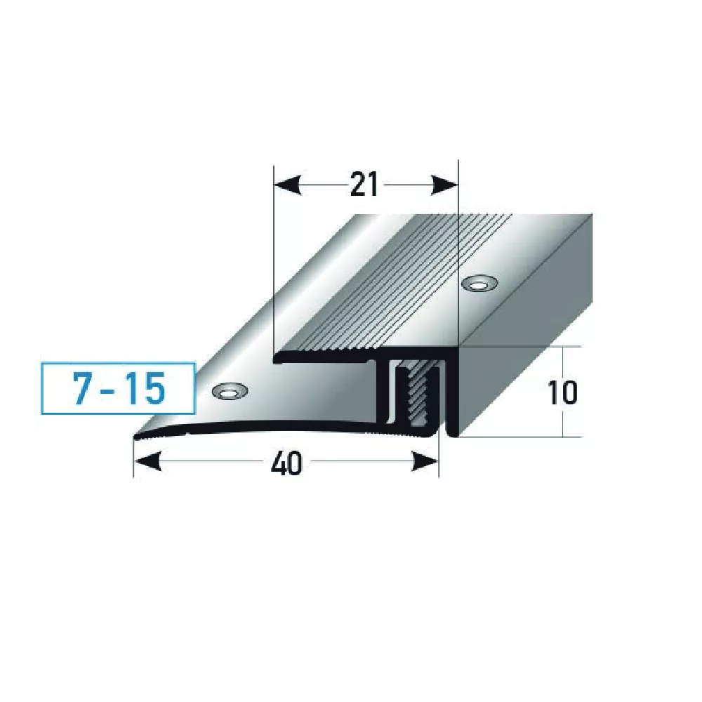 Nelle aree ad alto traffico, il profilo deve essere avvitato e ulteriormente incollato. Per aumentare la capacità portante, si consiglia di riempire la cavità tra il profilo metallico e il pavimento con un materiale adesivo.