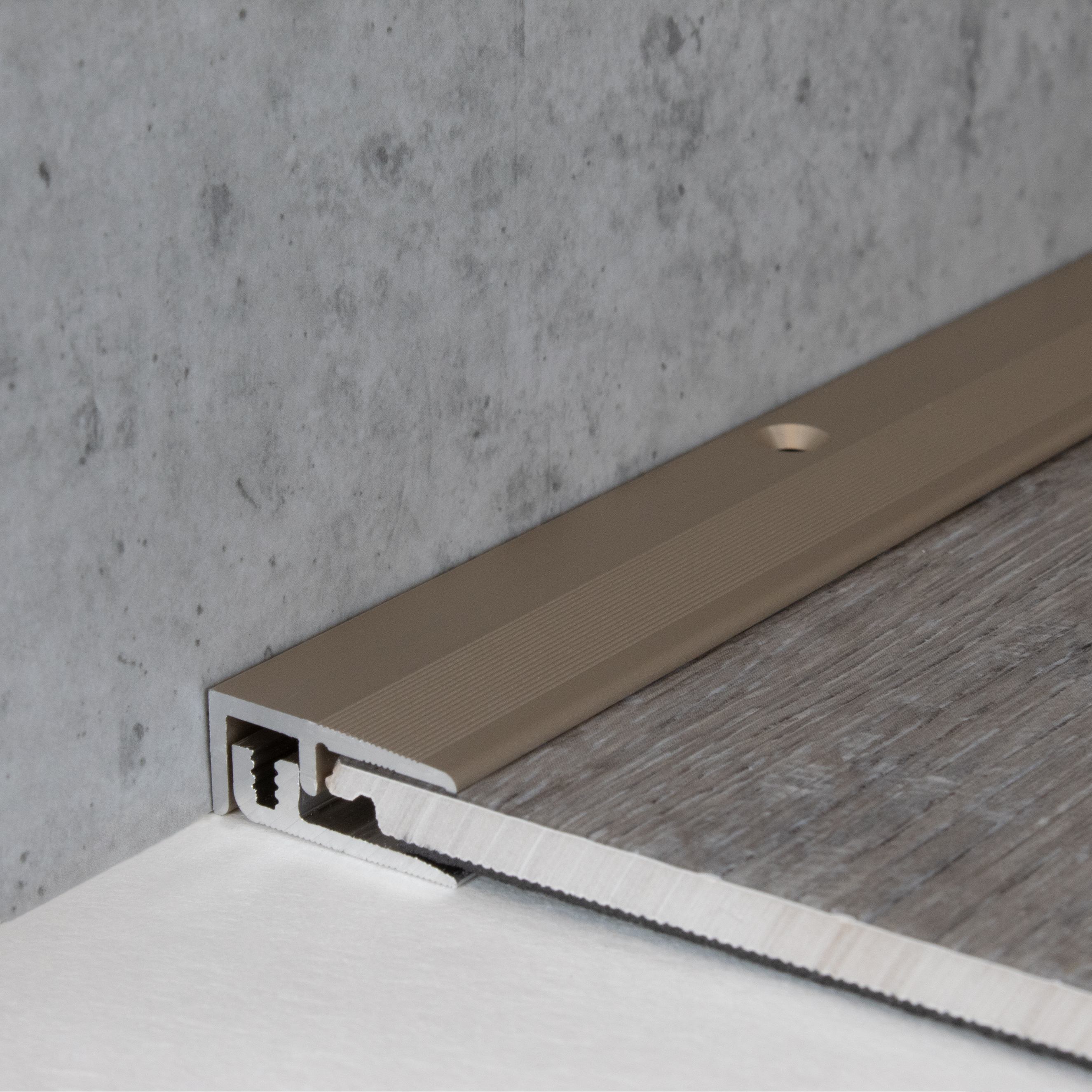 - COLORE: Bronzo chiaro. Grazie al suo aspetto semplice e moderno, questo colore si integra armoniosamente in qualsiasi stile di arredamento, indipendentemente dal fatto che i pavimenti siano scuri o chiari, o che le pareti siano bianche o colorate. DESIGN DEL PROFILO ACCATTIVANTE: Semplice, versatile e moderno. Questo profilo per pavimenti è senza tempo e un vero e proprio elemento di attrazione in ogni ambiente. APPLICAZIONE: I profili perimetrali proteggono idealmente i bordi del pavimento da eventuali danni e conferiscono alle finiture del pavimento un aspetto pulito e professionale. ACCESSORI: Le viti e i tasselli necessari sono inclusi. SUPERFICIE: Il profilo ha una superficie scanalata.