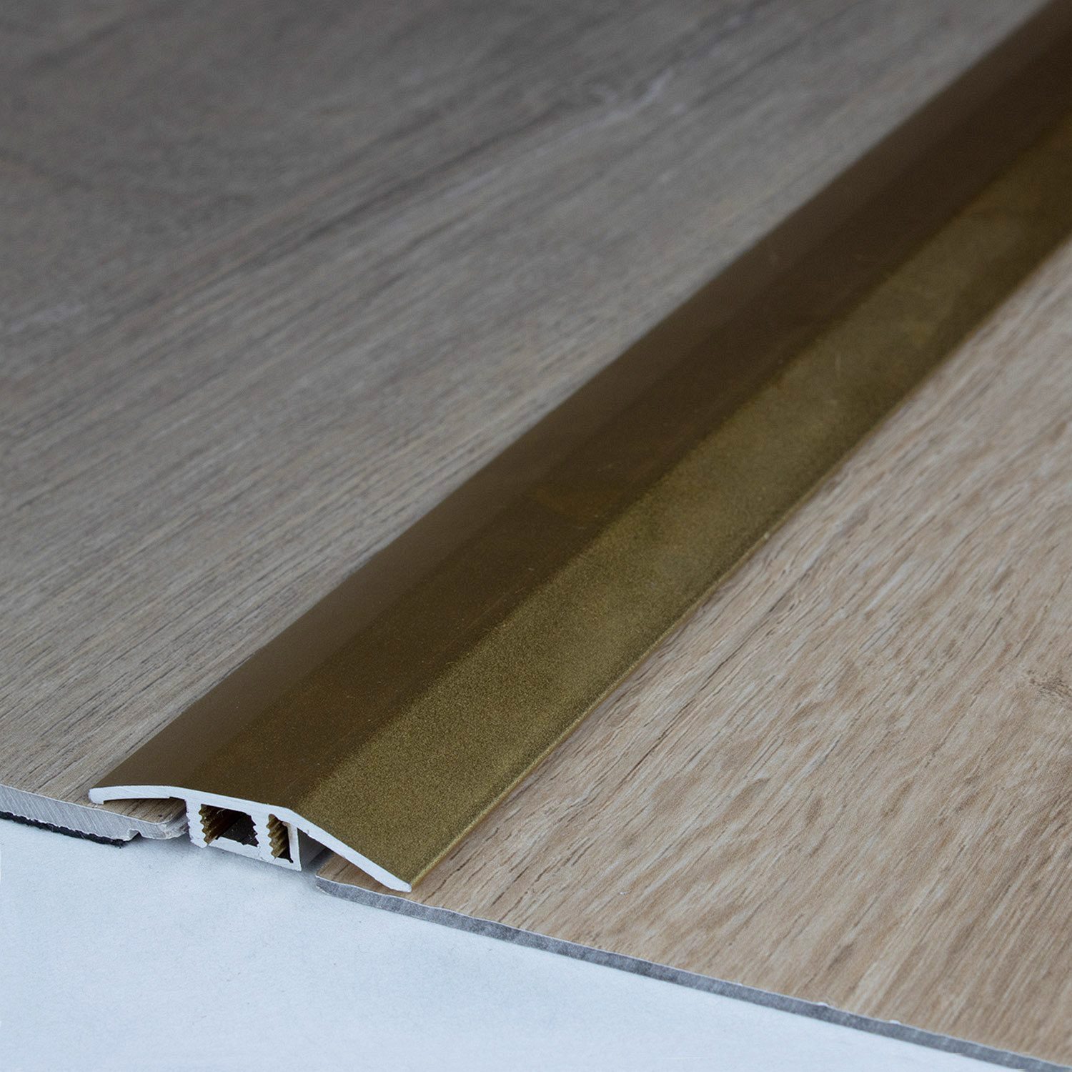 - COLORE: Color oro. Grazie al suo aspetto semplice e moderno, questo colore si integra armoniosamente in qualsiasi stile di arredamento, indipendentemente dal fatto che i pavimenti siano scuri o chiari. DESIGN DEL PROFILO ACCATTIVANTE: Semplice, versatile e moderno. Questo profilo per pavimenti è senza tempo e un vero e proprio elemento di attrazione in ogni ambiente. APPLICAZIONI: Che si tratti di transizione dal parquet alle piastrelle, dal laminato alla moquette o dal vinile al legno, i nostri profili livellanti garantiscono una transizione fluida tra pavimenti di diverse altezze.