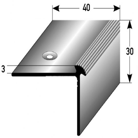 Profili per bordi e angoli delle scale, altezza 30 mm, larghezza 40 mm, altezza del bordo 3 mm, PROVISTON