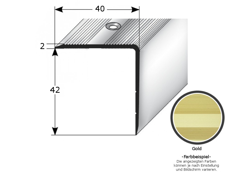 Profili per bordi e angoli delle scale, altezza 44 mm, larghezza 40 mm, spessore del materiale: 2 mm, PROVISTON