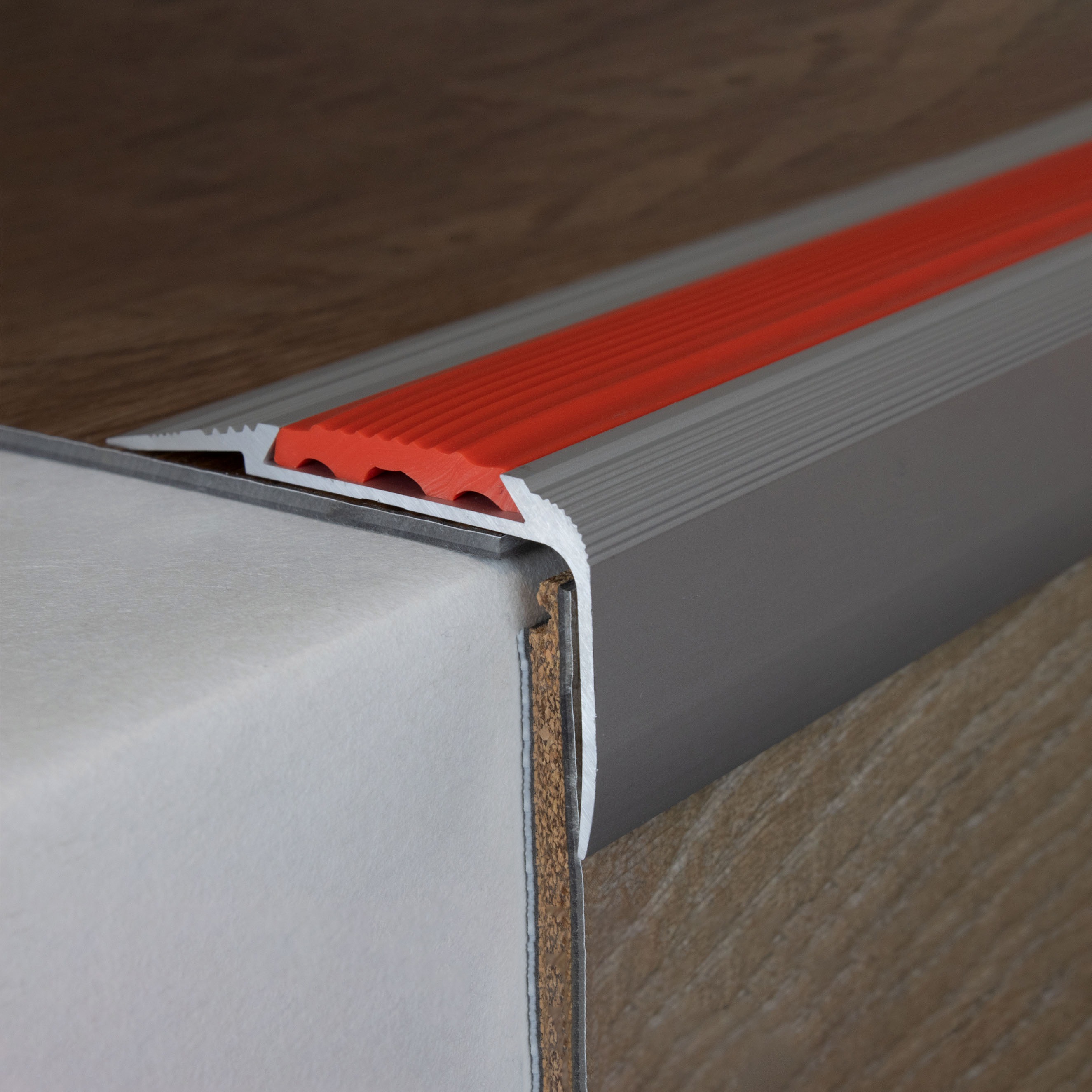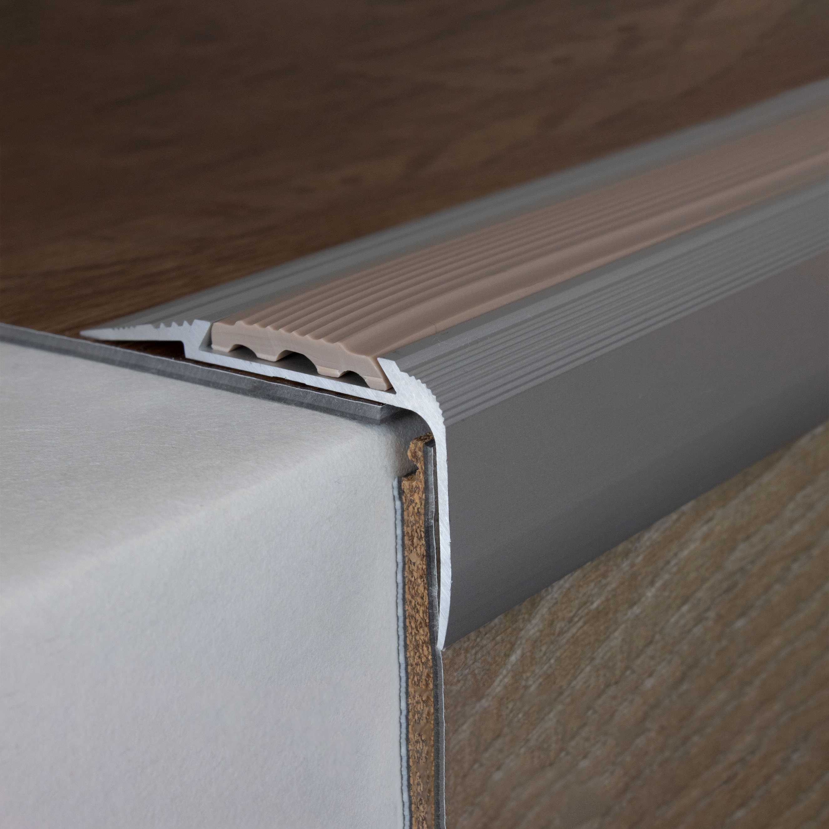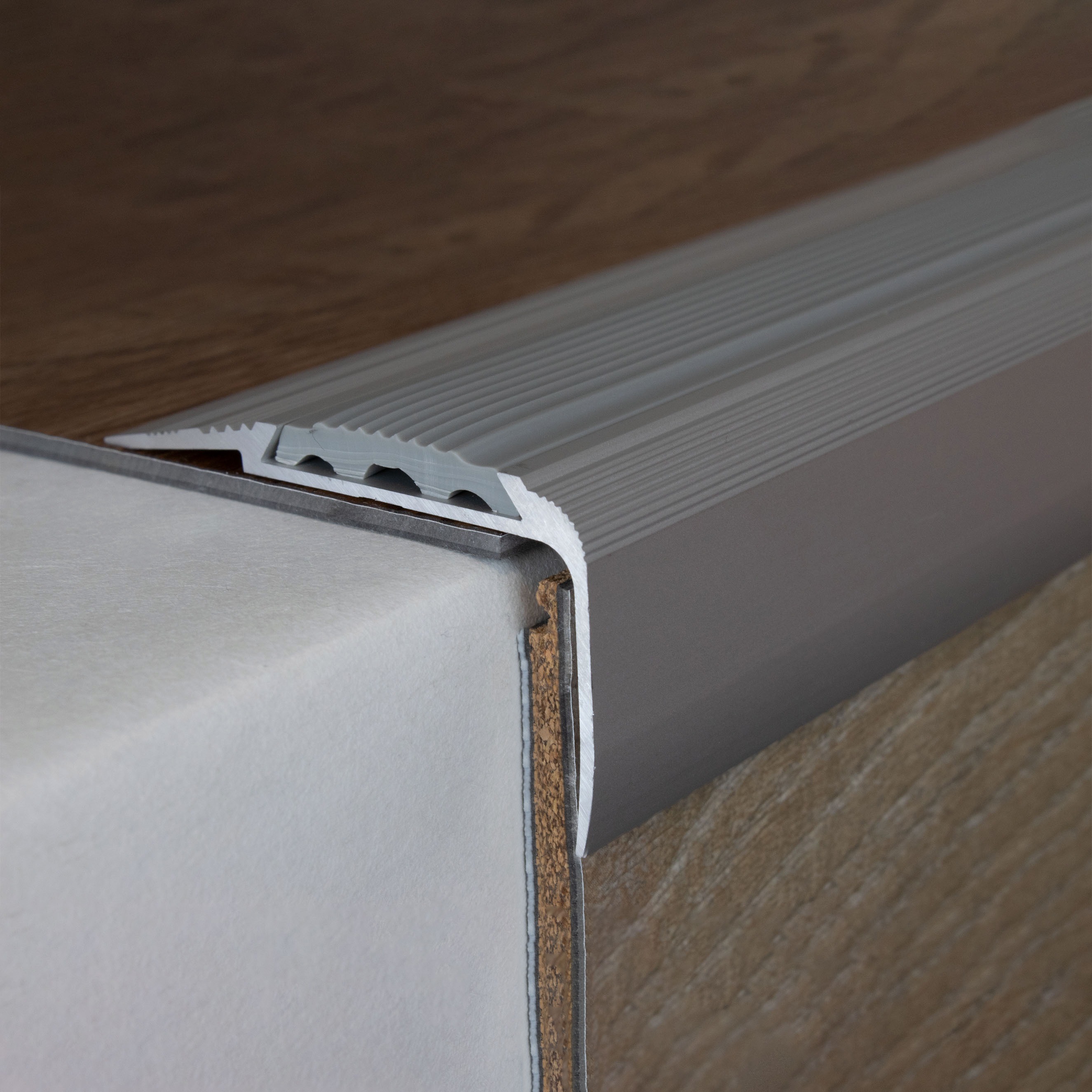 Profili per bordi e angoli delle scale Auer Cresta, altezza 27 mm, larghezza 58 mm, alluminio anodizzato