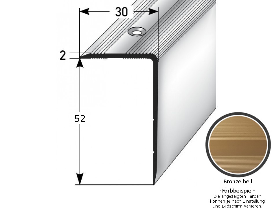 Profili per bordi e angoli delle scale, larghezza 30 mm, altezza 22-52 mm, spessore del materiale: 2 mm, PROVISTON