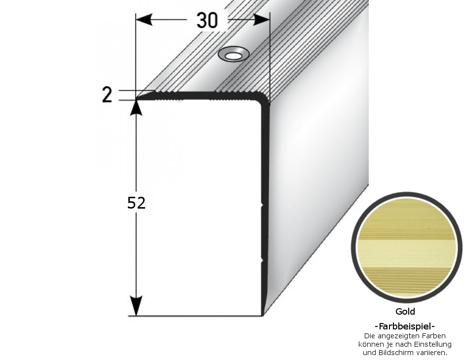 Profili per bordi e angoli delle scale, larghezza 30 mm, altezza 22-52 mm, spessore del materiale: 2 mm, PROVISTON