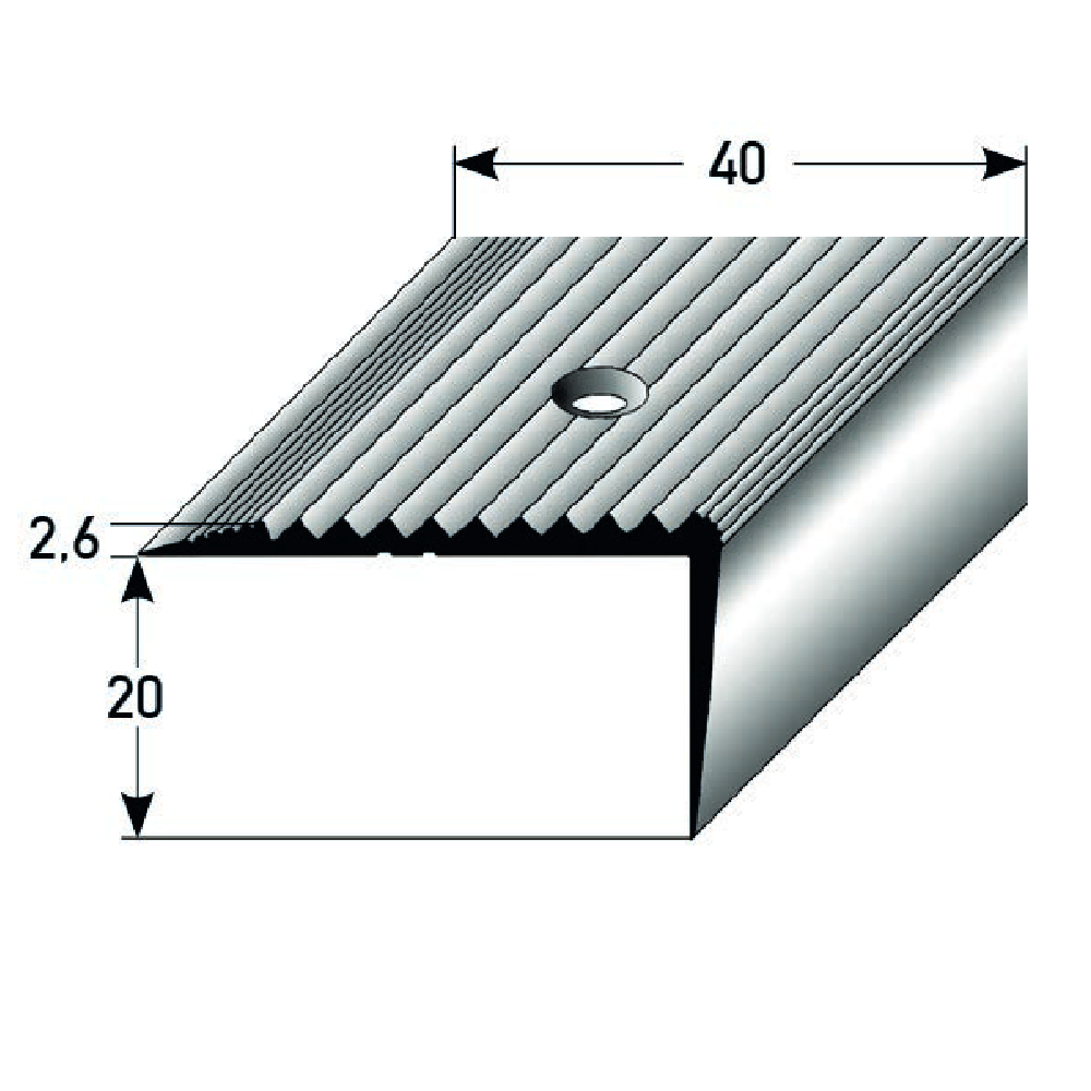Profili per bordi e angoli delle scale PROVISTON Terni Altezza 20 mm Larghezza 40 mm Alluminio
