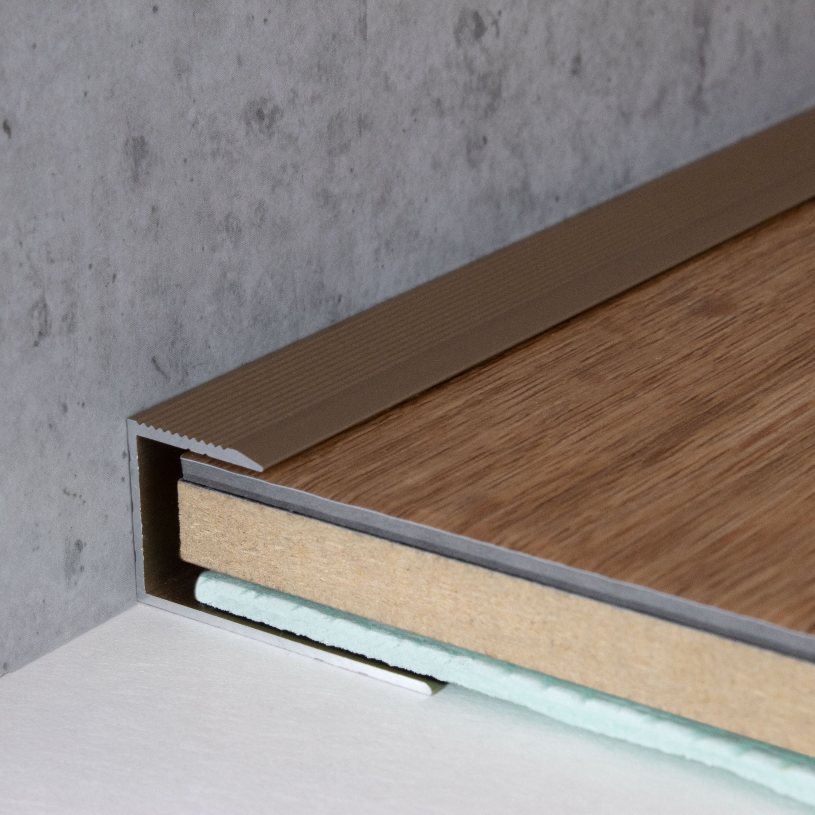 I nostri profili di finitura colpiscono per il loro design elegante, la lavorazione di prima classe e la loro capacità di integrarsi perfettamente nell'arredamento e nel pavimento. L'installazione è semplice e la scelta è ampia. I profili di finitura non solo creano una finitura esteticamente gradevole, ma creano anche transizioni pulite tra parete e pavimento.
