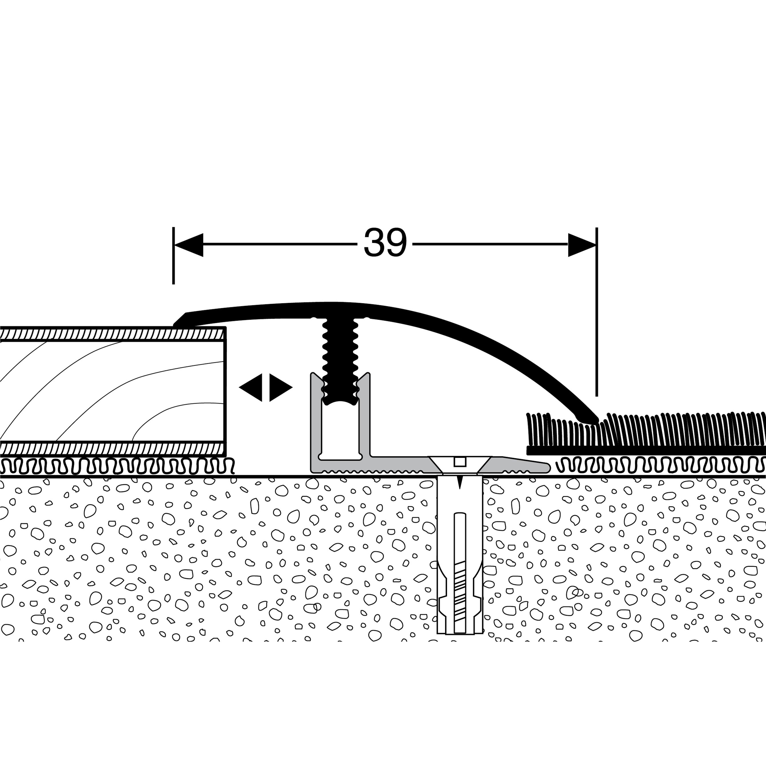 Profilo di transizione PROVISTON B 39 mm, altezza bordo 7 - 12 mm, striscia di transizione, alluminio anodizzato