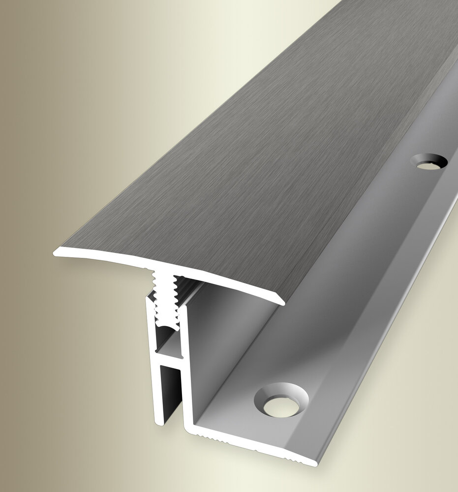 - COLORE: Effetto acciaio inox finemente spazzolato. Grazie al suo aspetto semplice e moderno, questo colore si integra armoniosamente in qualsiasi stile di arredamento, indipendentemente dal fatto che i pavimenti siano scuri o chiari, o che le pareti siano bianche o colorate. ACCESSORI: Le viti e i tasselli necessari sono inclusi. SUPERFICIE: Il profilo ha una superficie liscia. DESIGN DEL PROFILO ACCATTIVANTE: Semplice, versatile e moderno. Questo battiscopa è senza tempo e un vero e proprio elemento di attrazione in ogni stanza. ANTI-INCANTO: I profili compensano le differenze di altezza tra i pavimenti e riducono al minimo il rischio di incidenti. Questo crea non solo un ambiente sicuro, ma anche una sensazione di sicurezza per la famiglia e gli ospiti. AREA DI APPLICAZIONE: Che si tratti di transizione dal parquet alle piastrelle, dal laminato alla moquette o dal vinile al legno, i nostri profili garantiscono una giunzione perfetta e sicura, resistente all'uso quotidiano.