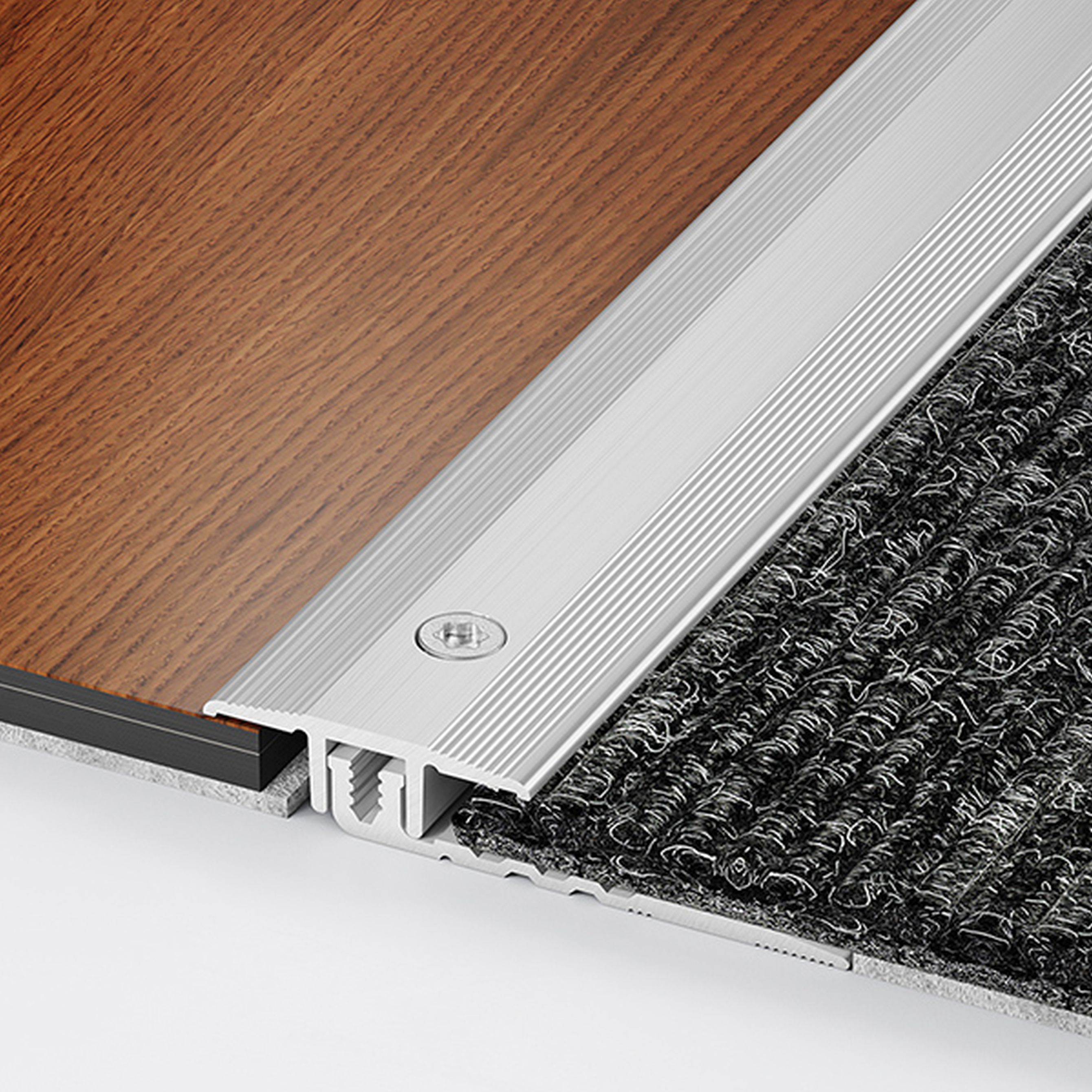 Transizioni senza soluzione di continuità e design elegante: i nostri profili di transizione offrono entrambi. I profili per pavimenti piatti forniscono un collegamento stabile tra diversi rivestimenti per pavimenti e garantiscono un aspetto esteticamente gradevole. Prevengono il rischio di inciampo e sono facili da installare. Oltre all'opzione del profilo autoadesivo, le strisce di transizione possono anche essere avvitate.