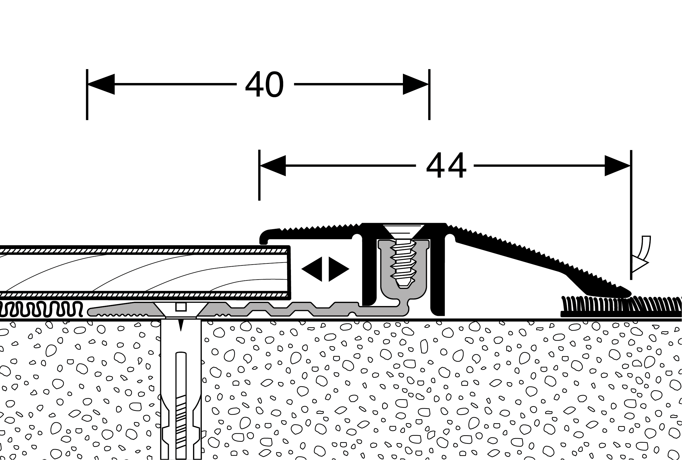 Nelle aree ad alto traffico, il profilo deve essere avvitato E incollato. Per aumentare la capacità portante, si consiglia di riempire lo spazio tra il profilo metallico e il pavimento con un materiale adesivo.