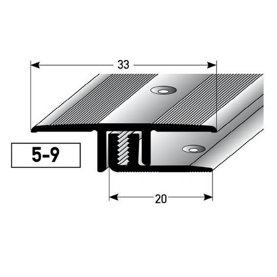 Profilo di transizione PROVISTON Richmond B, altezza bordo 33 mm, striscia di transizione 5-9 mm, alluminio anodizzato