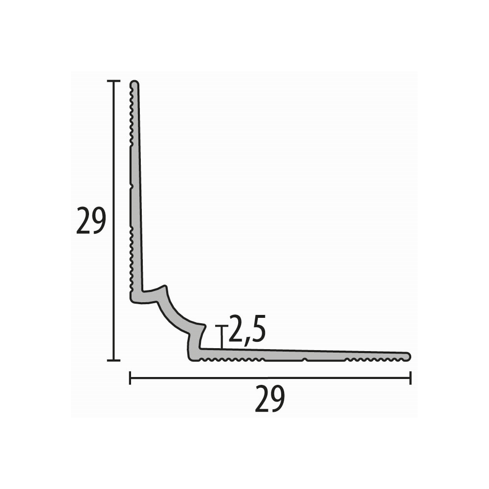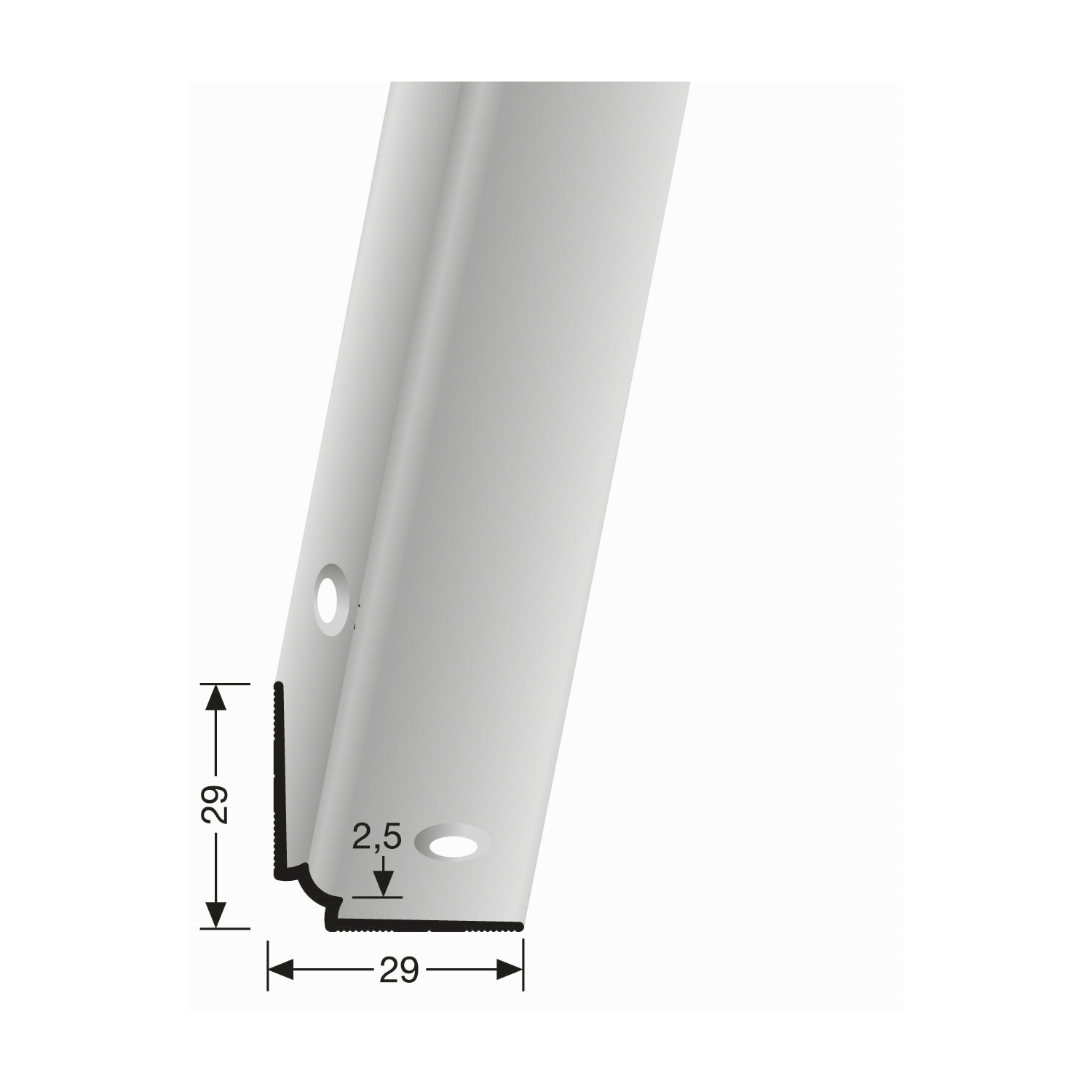 Profilo per bordo scala 29 x 29 x 2500 mm Alluminio Angolo interno scala Liscio Svasato Forato Küberit