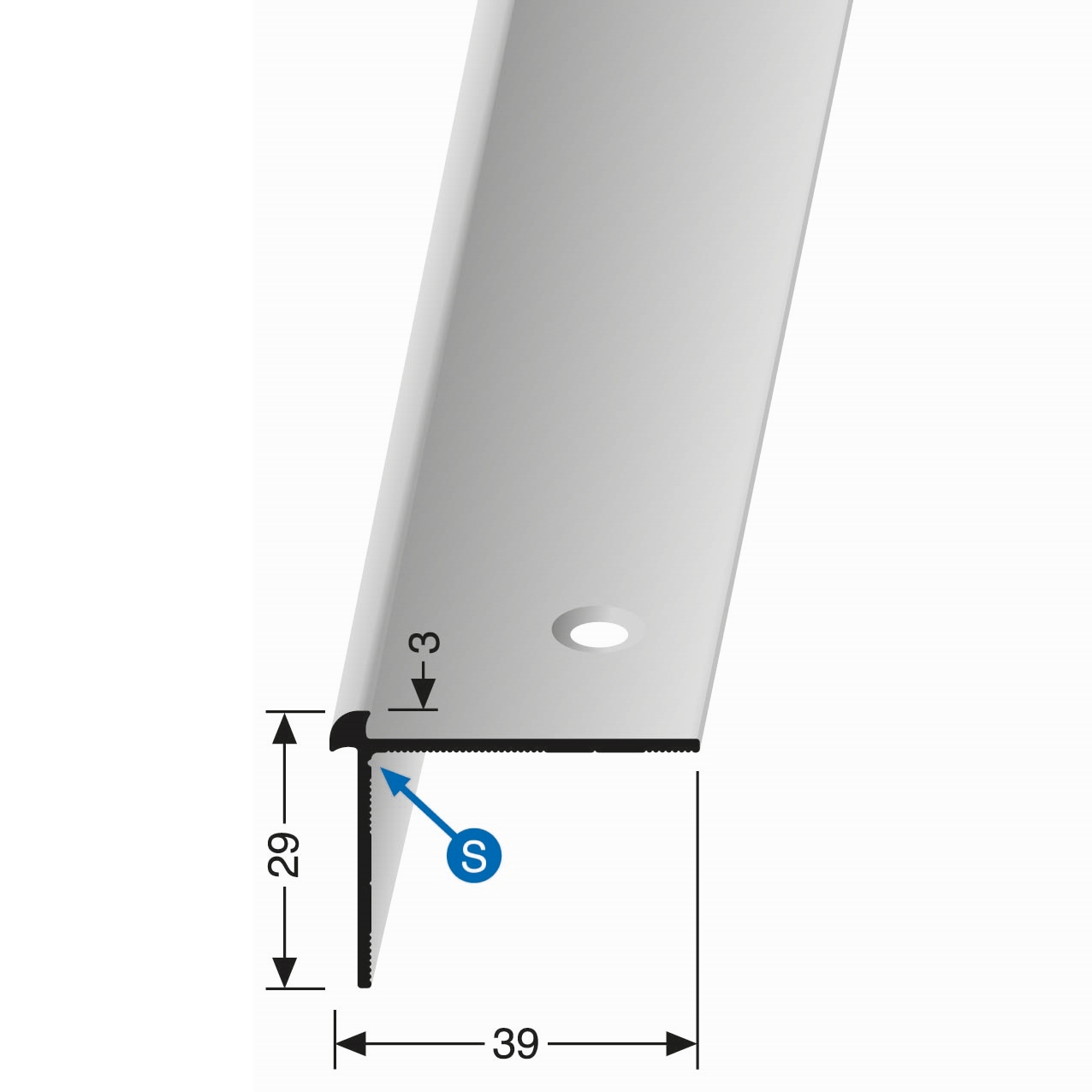 Profilo per bordo scala 29 x 39 mm profilo angolare in alluminio liscio svasato forato Küberit