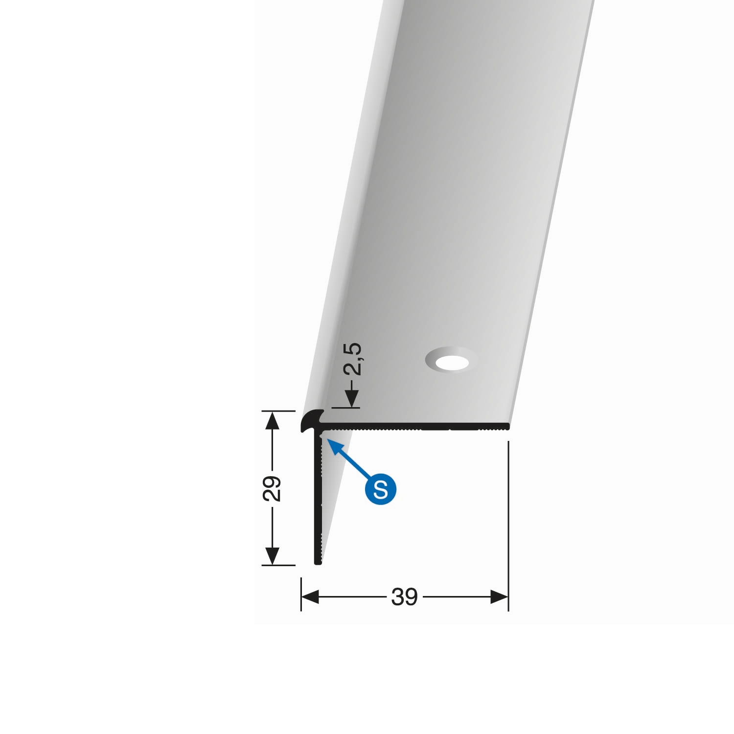 Profilo per bordo scala 29 x 39 mm profilo angolare in alluminio liscio svasato forato Küberit