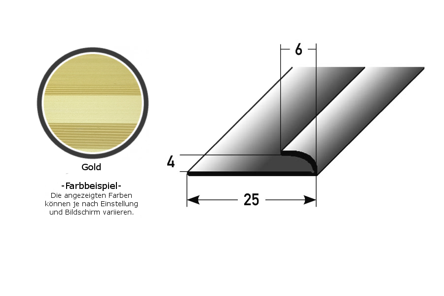 Profilo terminale, altezza 4 mm, larghezza 25 mm, larghezza bordatura 6 mm, profilo di bordatura in alluminio PROVISTON