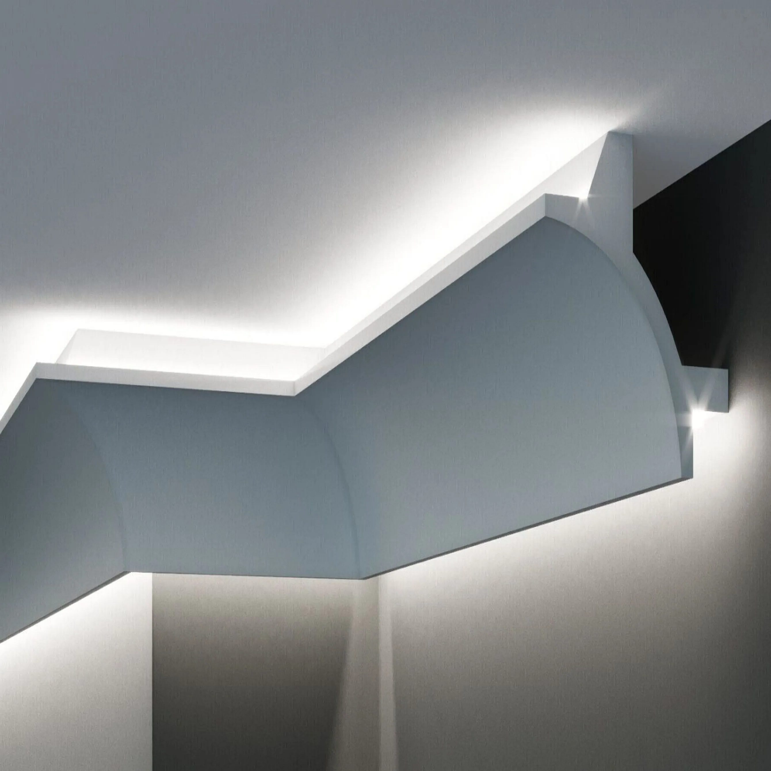 Le modanature creano la perfetta finitura tra parete e soffitto. Le modanature per soffitti dal design classico o moderno conferiscono ai vostri ambienti quel tocco in più. Molte delle modanature possono essere combinate con strisce LED. Con queste strisce luminose potrete mettere in risalto ogni stanza in modo ancora più unico.